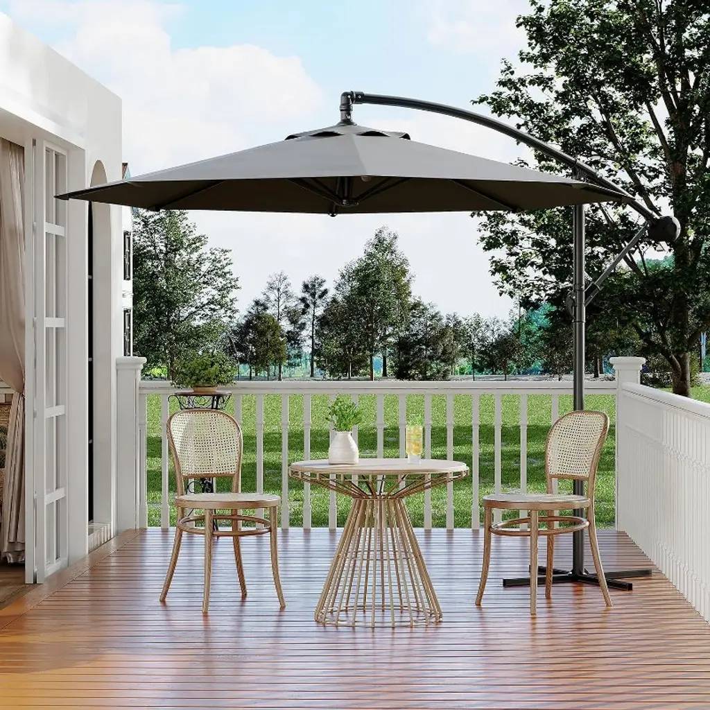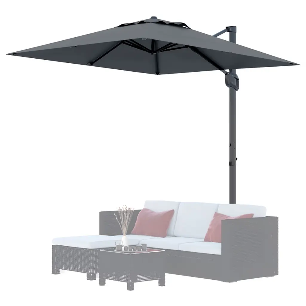 This large wall-mounted parasol is a classy way to add some shade outdoors. It's perfect for gardens and balconies, and its sleek black design looks fabulous with any outdoor setting while offering loads of sun protection. Durable Material: Made from UV-resistant polyester that stands up to sun damage and fading. You can relax underneath knowing it’ll last and won’t wear out from the sun.Manual Adjustment: Features a straightforward hand crank system for opening and closing, plus a tilt feature to adjust the angle easily. It's simple enough for anyone to use, giving you great sun protection all day.Versatile Design: This parasol fits right in various outdoor spots, from balconies to backyards. It gives your patio a boost while providing the shade you need for outdoor fun.Spacious Coverage: With a 118.1 inch circular canopy, this parasol can easily shade several people, perfect for summer barbecues or family get-togethers. It creates a comfy shaded space for you and your friends.Easy Installation: Comes with all you need for quick and easy setup. Once it’s mounted, you'll be ready to enjoy your outdoor space in no time.