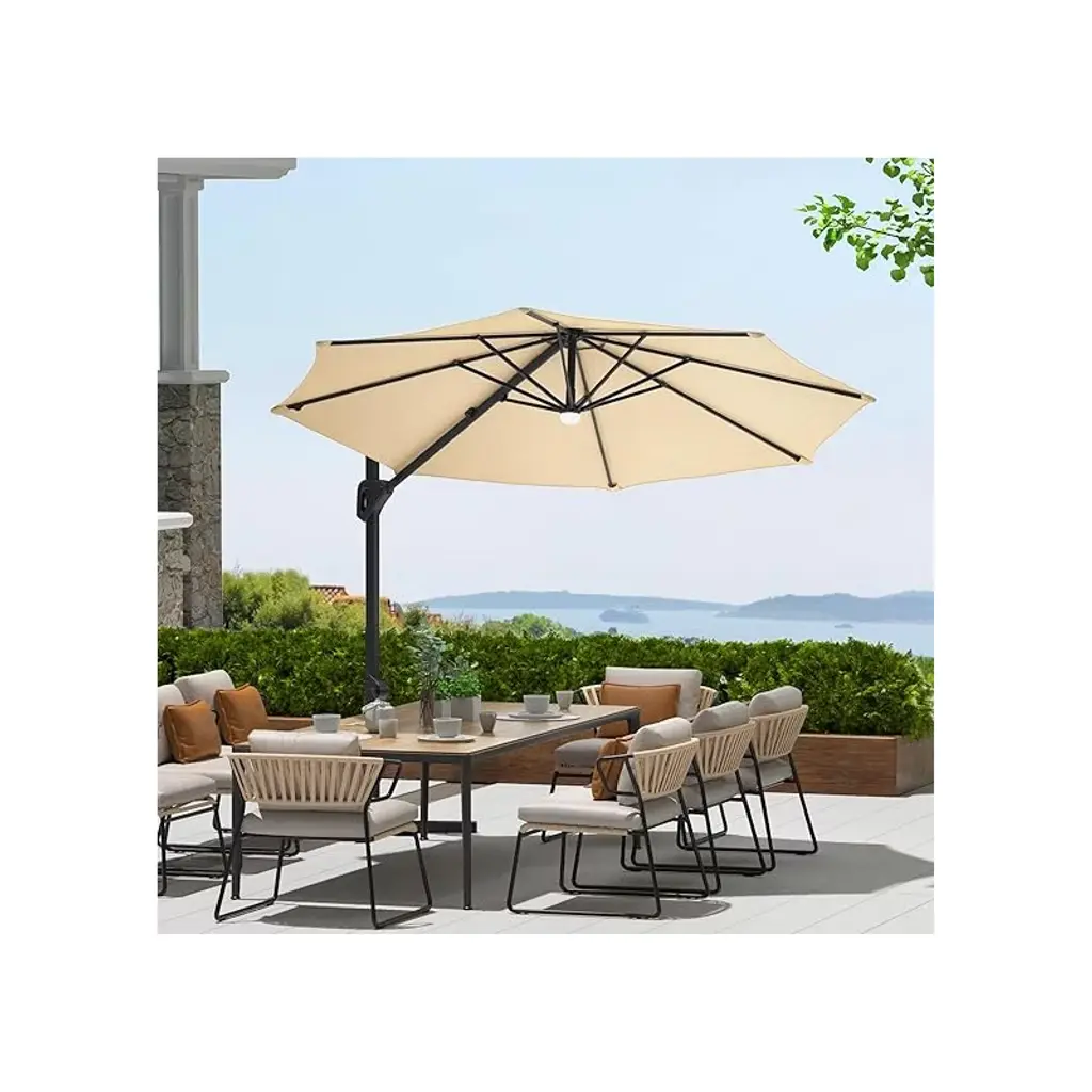 This wall-mounted parasol is a great addition to any outdoor space, providing stylish shade and practicality. With its modern look and handy features, it's perfect for patios, terraces, or backyards, so you can enjoy comfy outdoor chill time all year round. Adjustable Shading: The tiltable function lets you set the parasol to block the sun from different angles, keeping you cool no matter the hour. This handy feature works well for relaxing or socializing. UV-Resistant Fabric: Made from top-notch polyester, this parasol is resistant to fading and helps shield you from harmful sun rays, ensuring it lasts ages. It’s perfect for sunny days! Space-Saving Design: The wall-mounted style makes the most of your patio or terrace space, great for smaller outdoor areas while ensuring you still get plenty of shade. It helps keep your outdoor area tidy and organized. Robust Construction: With a strong metal pole, this parasol can handle moderate winds and weather, ensuring it stays stable throughout the summer. Its design mixes toughness with a good look. Large Shade Coverage: With a generous 118.1 in diameter, it provides ample shade for dining sets or loungers, enhancing your outdoor experience by creating a cool, inviting spot for you and your guests to kick back.