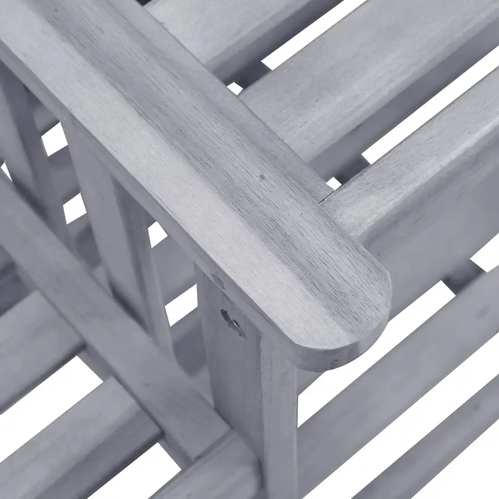 This Rustic Acacia Wood Bistro Set brings the outdoors to life with its easy-going charm and understated elegance, making it a great addition to any garden or patio. Made from solid acacia wood, it features a stylish double chair and a handy table, creating the perfect vibe for a cup of tea or meals with friends and family in your outdoor hangout. Solid Acacia Construction: This bistro set features a tough frame made of solid acacia wood, ensuring strength and durability fit for any weather. Its natural toughness means peace of mind for outdoor furniture.Comfortable Cushions: Each seat comes with soft, removable polyester cushions for extra comfort during those long, lazy afternoons. These cushions are made for the outdoors, so they won't fade or wear out easily.Stylish Rustic Finish: The weathered finish gives the set a rustic character, blending in perfectly with natural surroundings while sprucing up your outdoor decor for cozy gatherings.Space-Saving Design: Ideal for smaller outdoor spaces, this set seats two comfortably without losing its charm.Easy Maintenance: Keeping this outdoor furniture set looking fresh is a breeze; just use a mild detergent and cloth. Plus, the cushions come off easily for cleaning or storage when not in use.