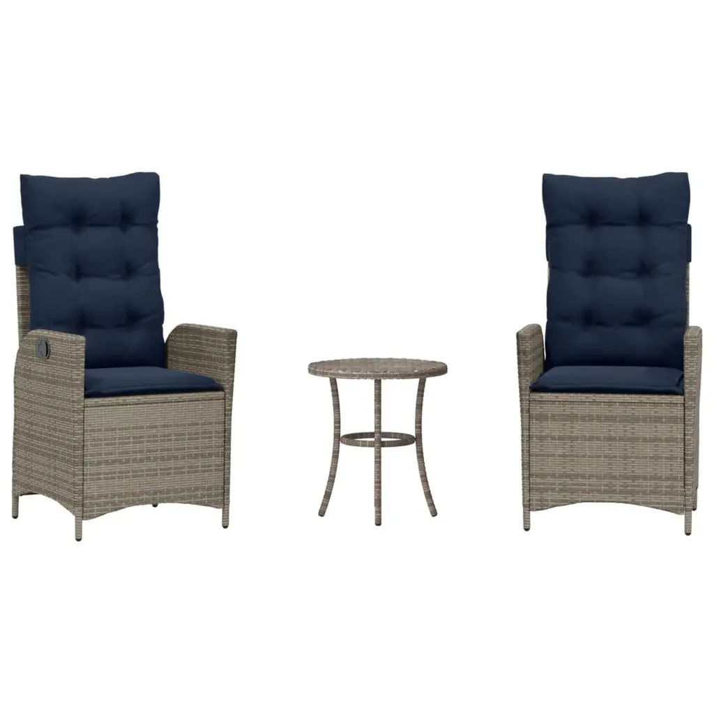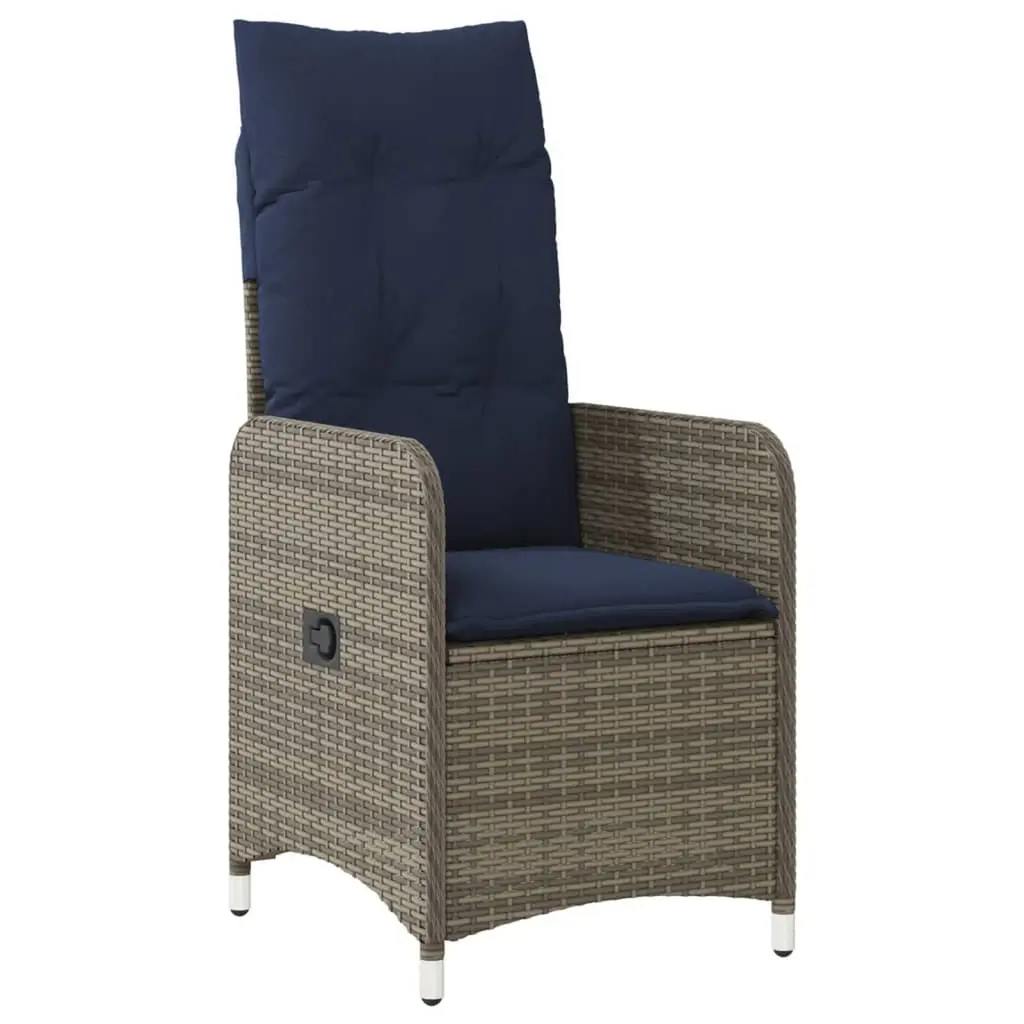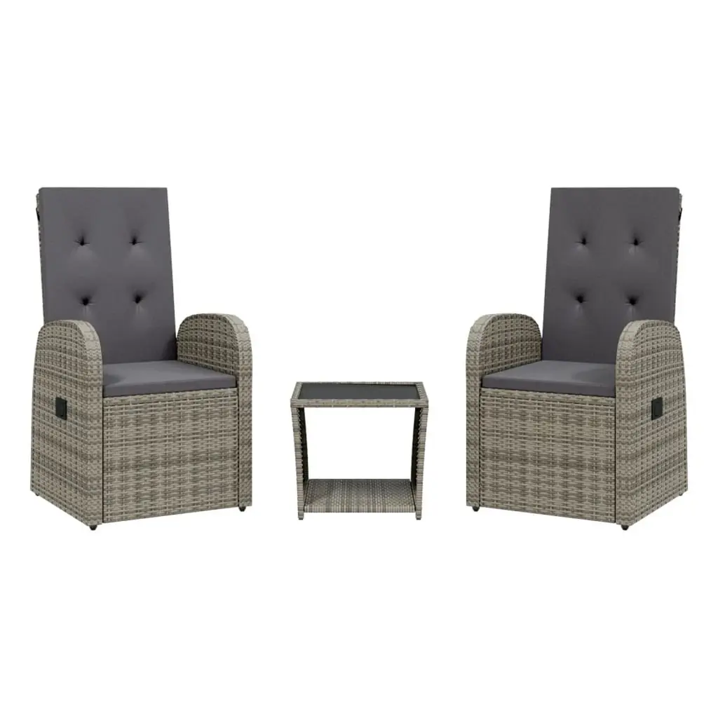 Vidaxl Reclining Patio Chairs 2 Pcs With Table Gray Poly Rattan