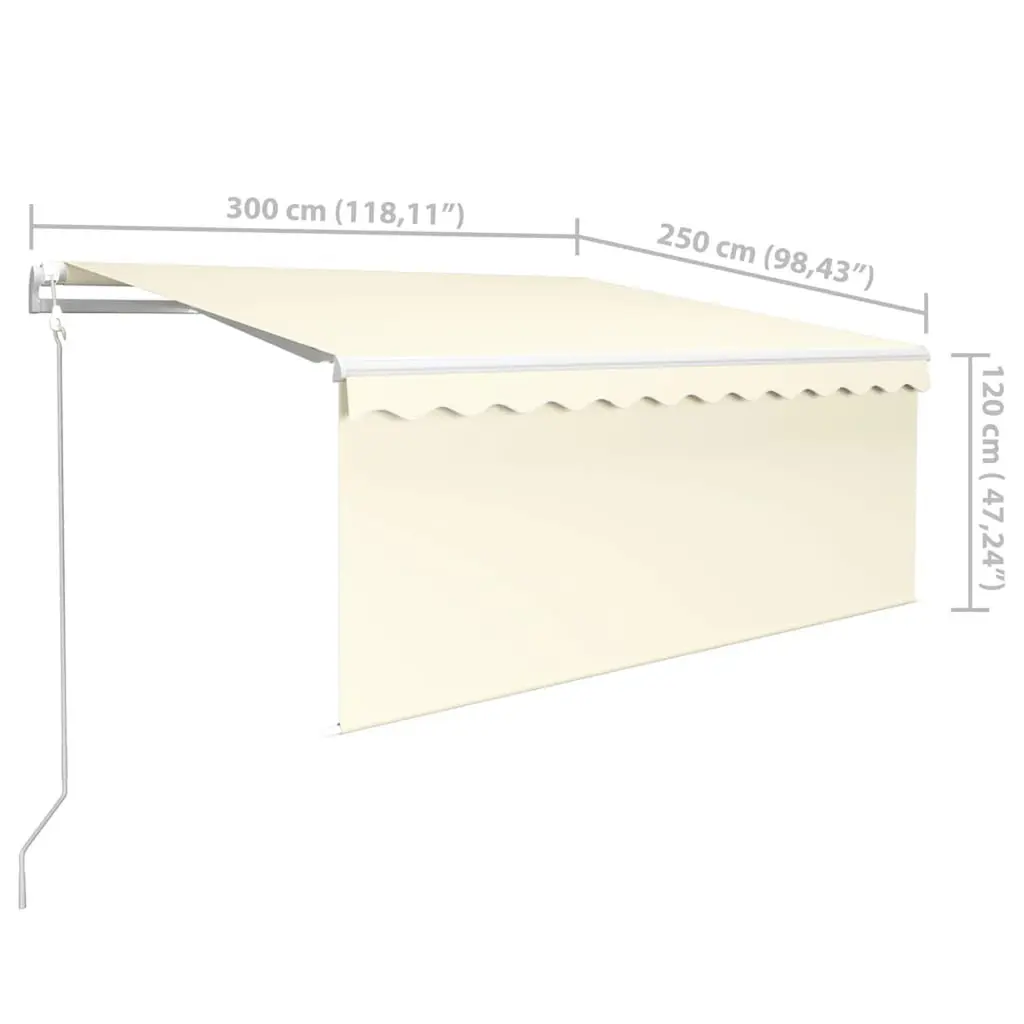 This Automatic Retractable Awning is here to make your outdoor times better, especially on patios and balconies. It gives you loads of coverage and is easy to pull back with a remote control, so you can soak up the sun or relax in the shade whenever you fancy. Adjustable Mechanism: This awning lets you tweak its height and extension easily, giving you just the comfort you want. It extends out or rolls back to fit the weather, so you can control your shade.Durable Material: Made from powder-coated aluminum and water-resistant polyester, it's tough against the weather without fading. UV protection ensures it stays looking good in the sun.Easy Operation: Comes with a wireless remote for easy adjustments, letting you kick back and enjoy your space without any fuss. You can focus on relaxing while your awning does the work.Stylish Design: The cream color and modern lines not only make it functional but also add a trendy touch to your balcony or garden. It fits well into any modern outdoor décor.Size Flexibility: With dimensions of 118.1 x 98.4 in, it offers plenty of shade for tables, sofas, or other garden bits, perfect for family get-togethers or outdoor meals.