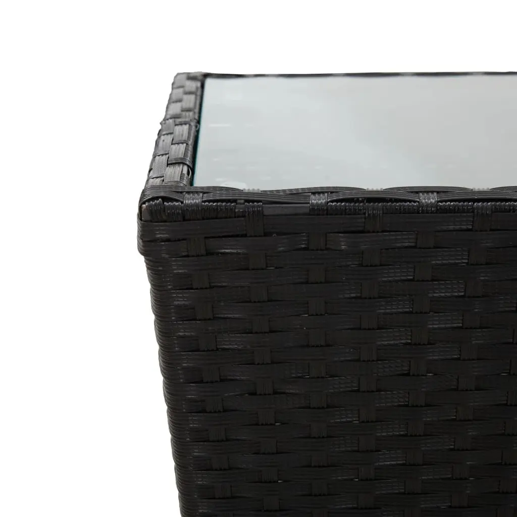 Vidaxl Tea Table Black 16.3"x16.3"x16.9" Poly Rattan And Tempered Glass