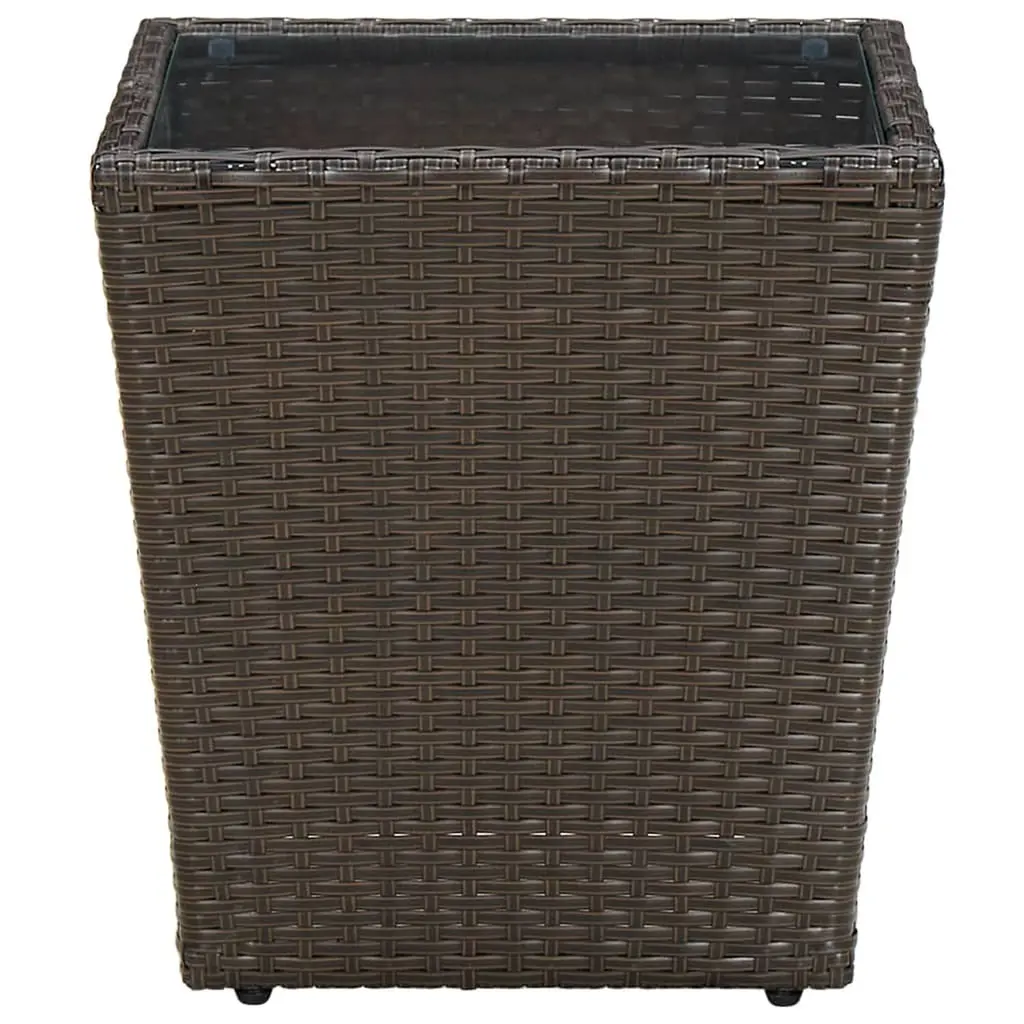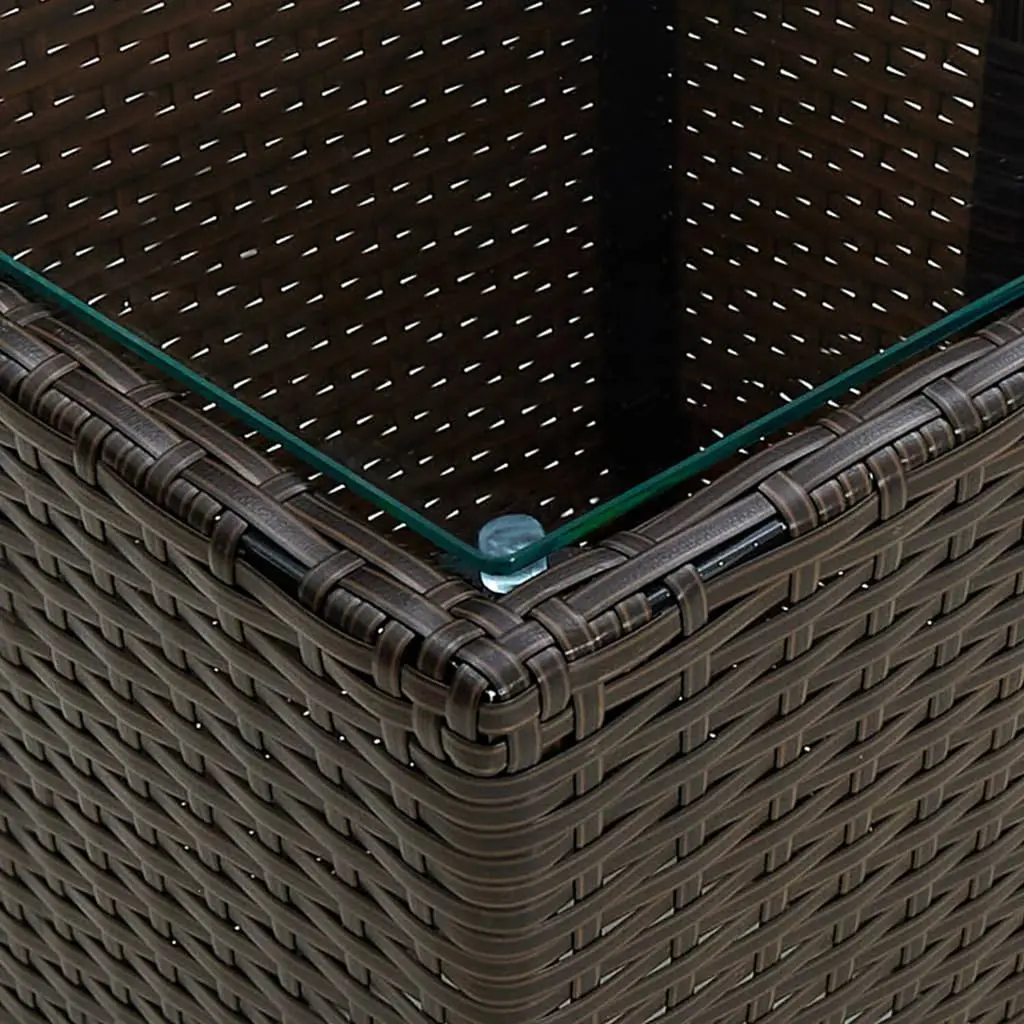 This tea table mixes a modern vibe with practicality, making it a must-have for indoor and outdoor spaces. Its sleek square shape and see-through tempered glass top create a classy yet strong piece that's perfect for serving coffee and sprucing up your garden decor. Durable Materials: Made from poly rattan and powder-coated steel, this tea table stands strong against the elements, ensuring it'll last and stay easy to care for. The materials are picked to keep their style and function, no matter the weather.Stylish Design: With a modern woven look, this table has a fab appearance that goes well in various settings, melting into casual garden spots or classy patios.UV Protection: With materials that resist UV rays, you can chill knowing it won’t fade from being outside.User Friendly: The lightweight build means you can easily move it around, so you can put it wherever you need that touch of style or practicality during gatherings.Convenient Size: At 16.3 in x 16.3 in x 17.3 in, this table hits the sweet spot between providing enough space for drinks and being compact enough for tight patios or balconies.