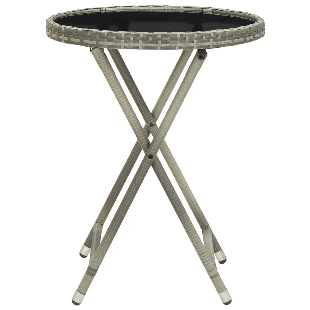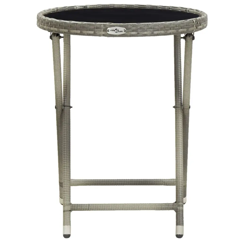 Vidaxl Tea Table Grey Pe Rattan, Steel, Tempered Glass Medium Foldable