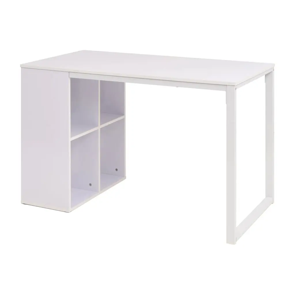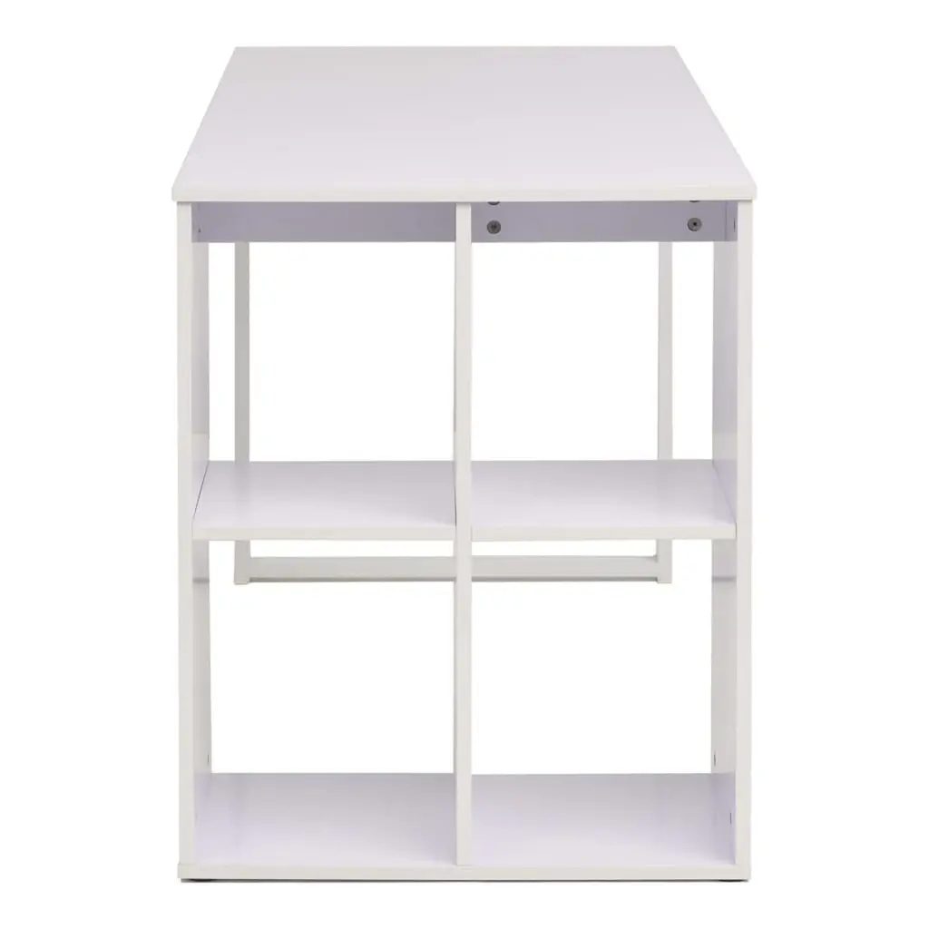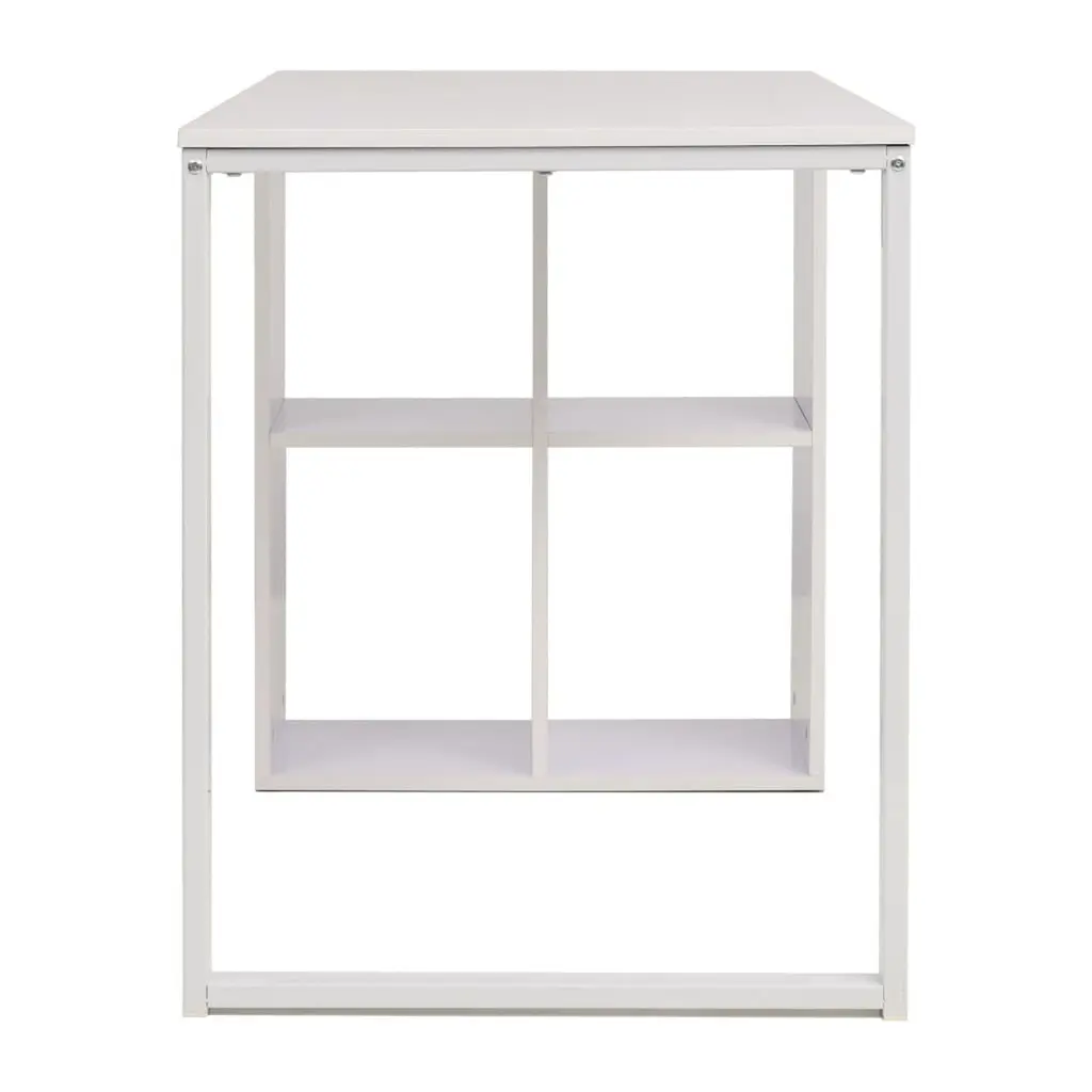 This writing desk combines function with a slick design, making it a brilliant addition to any home office, bedroom, or study. Its solid build and smooth matte white finish not only look great but also create an ideal workspace for getting on with your studying, writing, or computer tasks in a relaxing atmosphere. Contemporary Design: The desk’s modern aesthetic with clean lines and a painted finish fits perfectly with various decor styles, especially in contemporary spaces. Ample Storage: With four built-in shelves, this desk provides plenty of space for organization, keeping all your essentials handy for a neat workspace. Sturdy Construction: The blend of engineered wood with a solid steel frame ensures durability, letting this desk hold up to regular use while keeping its good looks. Versatile Use: Perfect for multiple tasks, this desk works brilliantly as a computer workstation for both work and study, creating a functional space just for you. Smooth Texture: The desk features a non-reflective matte finish that adds to its modern appeal, plus it has a smooth surface that's easy to keep clean.
