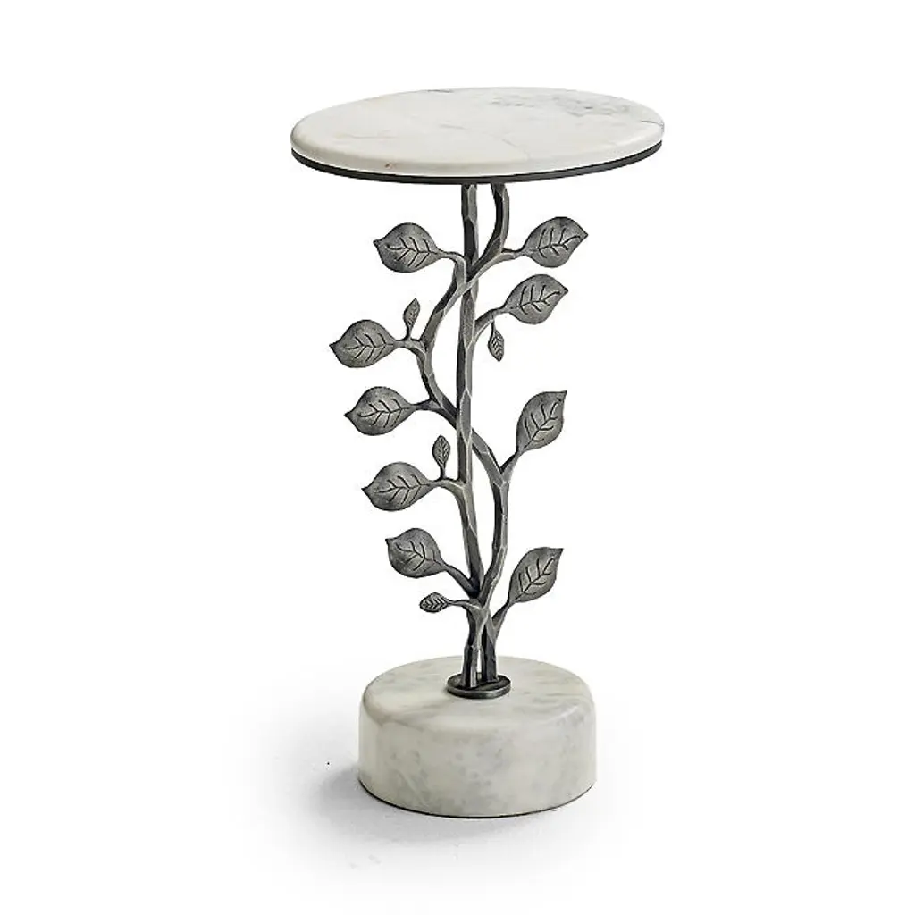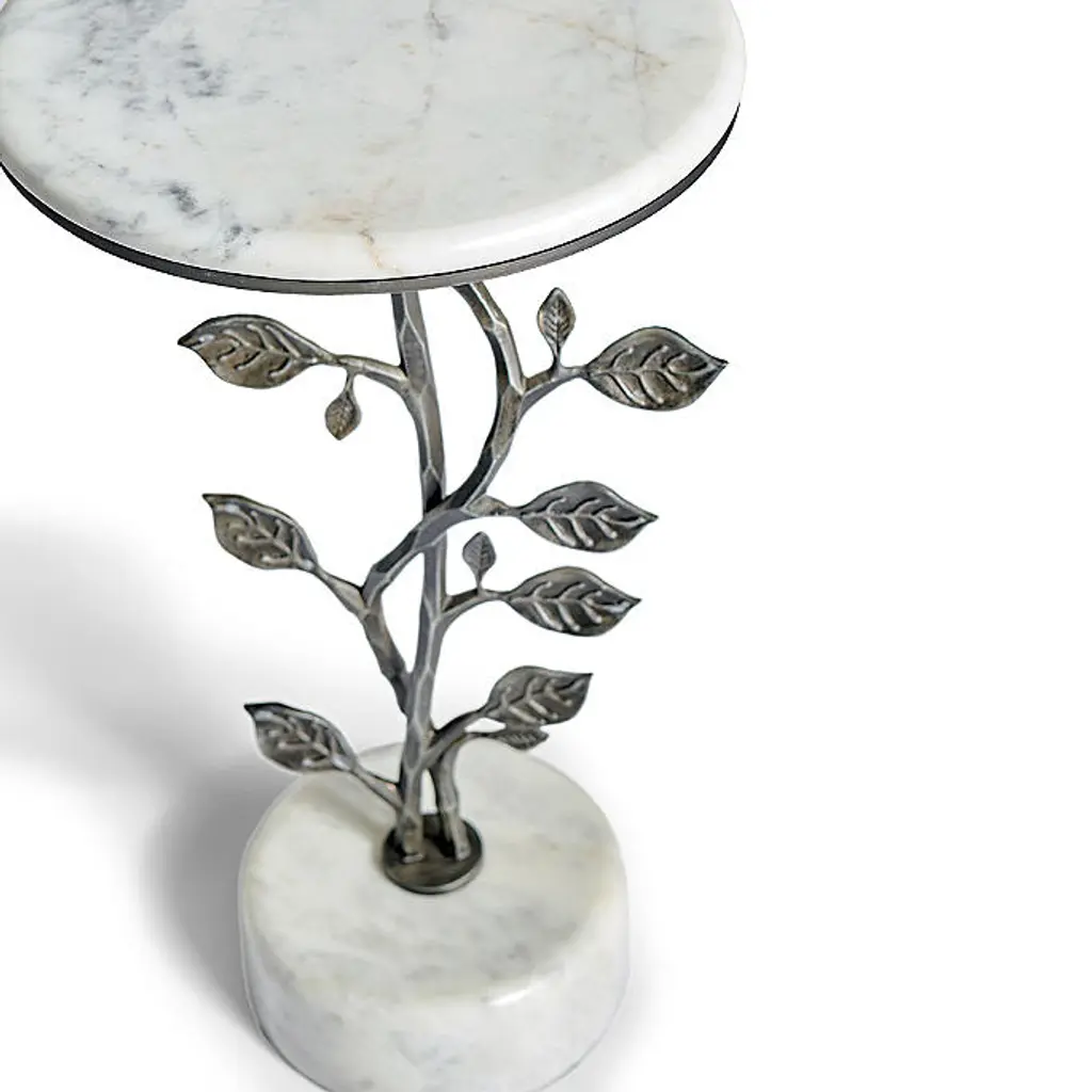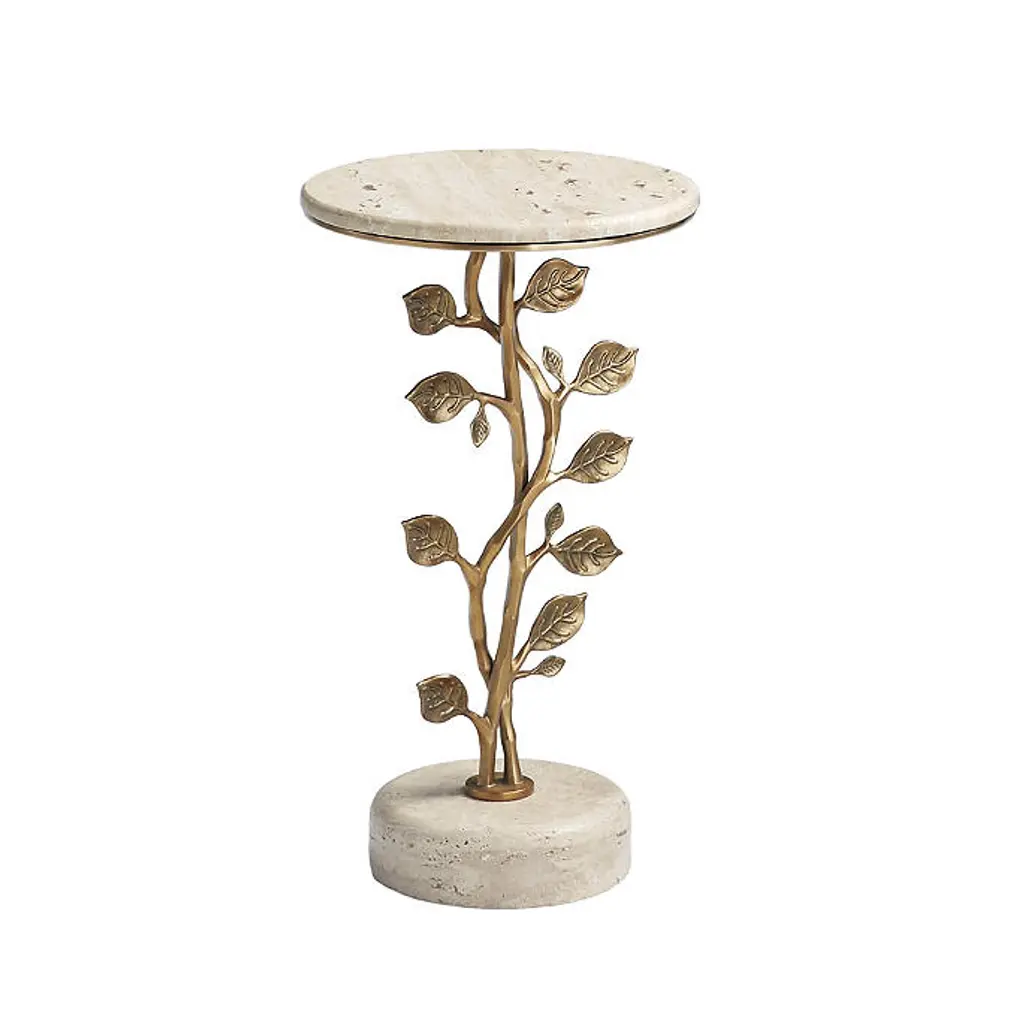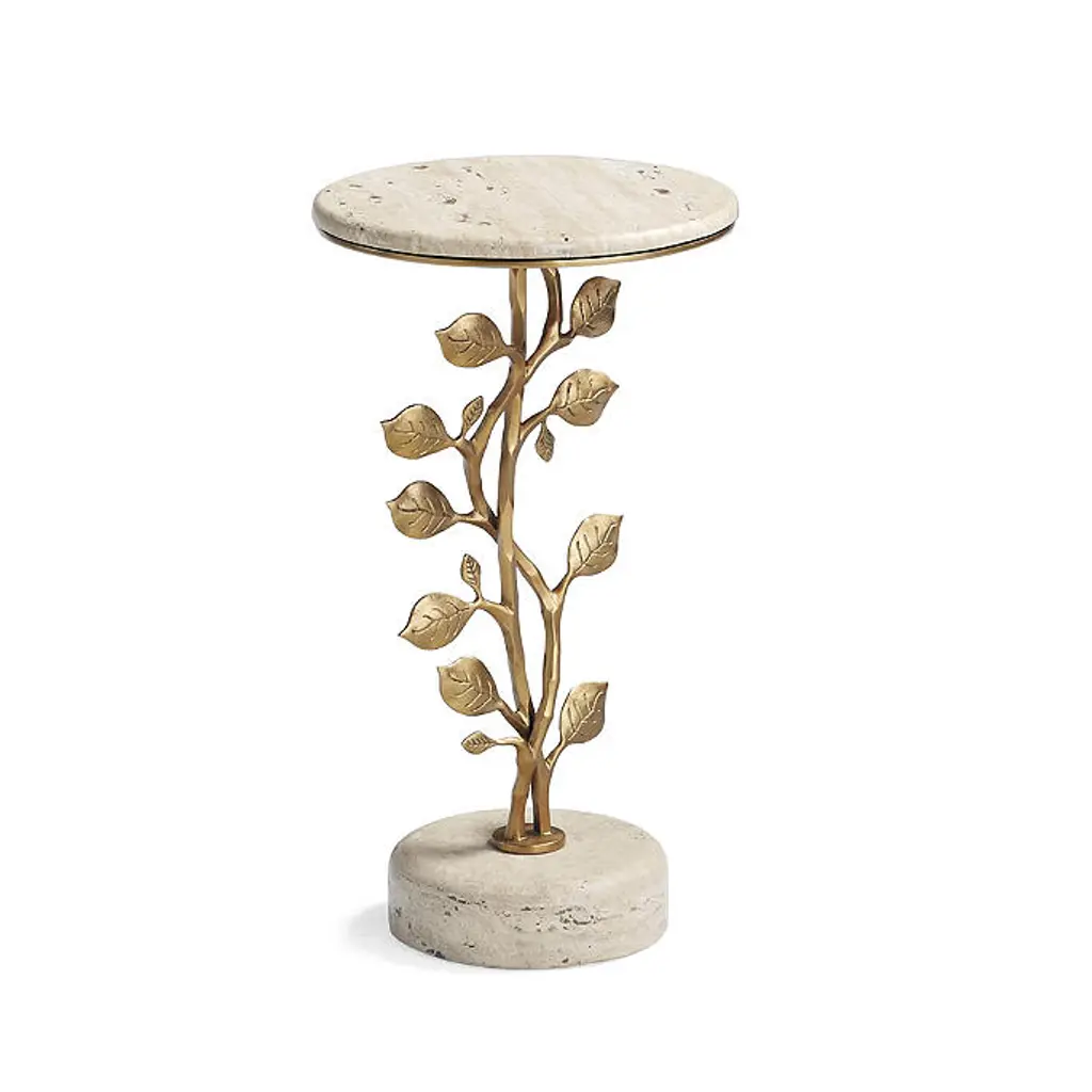 Showcasing a base of curved metal vines sprouting numerous metal leaves from top to bottom, our Vinery Drink Table adds nature-inspired style to any setting. Crafted from cast aluminum, choose between an antiqued brass finish and a travertine tabletop and base or a zinc patina finish with cararra marble tabletop and base. Aluminum table is cast from a mold handcrafted by artisans Antiqued brass finish has Travertine tabletop and base Zinc patina finish has Cararra marble tabletop and base Due to natural variations in travertine, each piece is inherently unique Coordinates with Vinery Tables and Console Table To prevent injuries or damage to item, recommended team lift (two or more people) for furniture placement Arrives assembled A Frontgate exclusive. At Frontgate, our primary focus is quality. We guarantee that every product we sell will stand up to the supreme test – our customers' satisfaction. To learn more about our policies, visit our Shipping & Processing, Returns & Exchanges and Warranty & Price Guarantee pages.