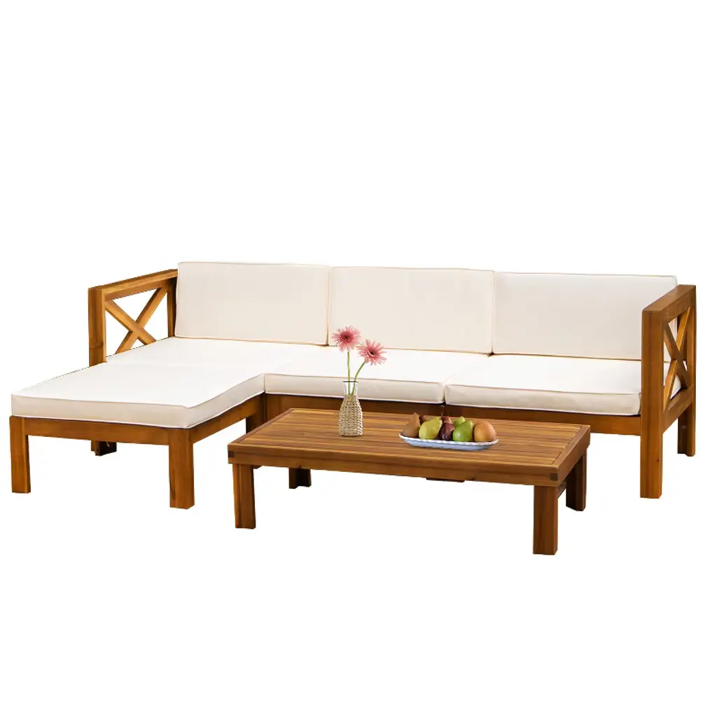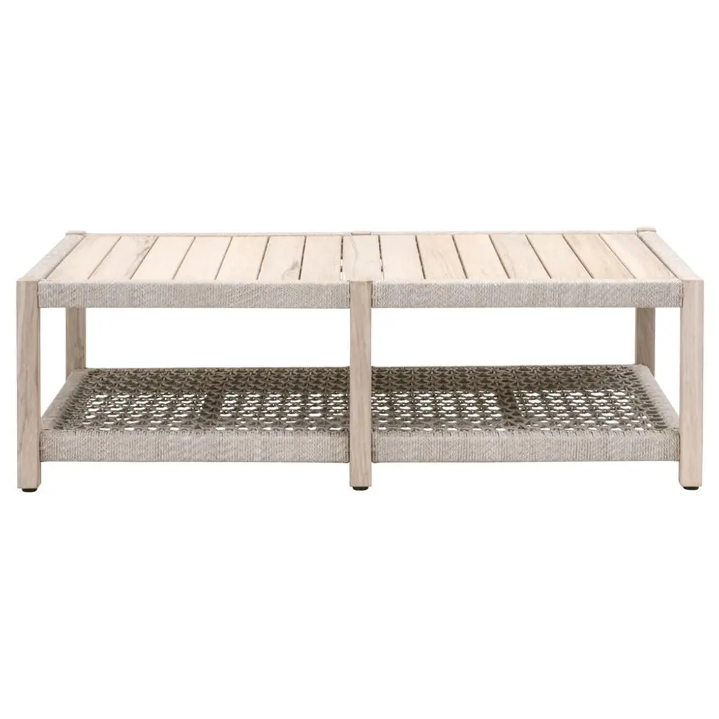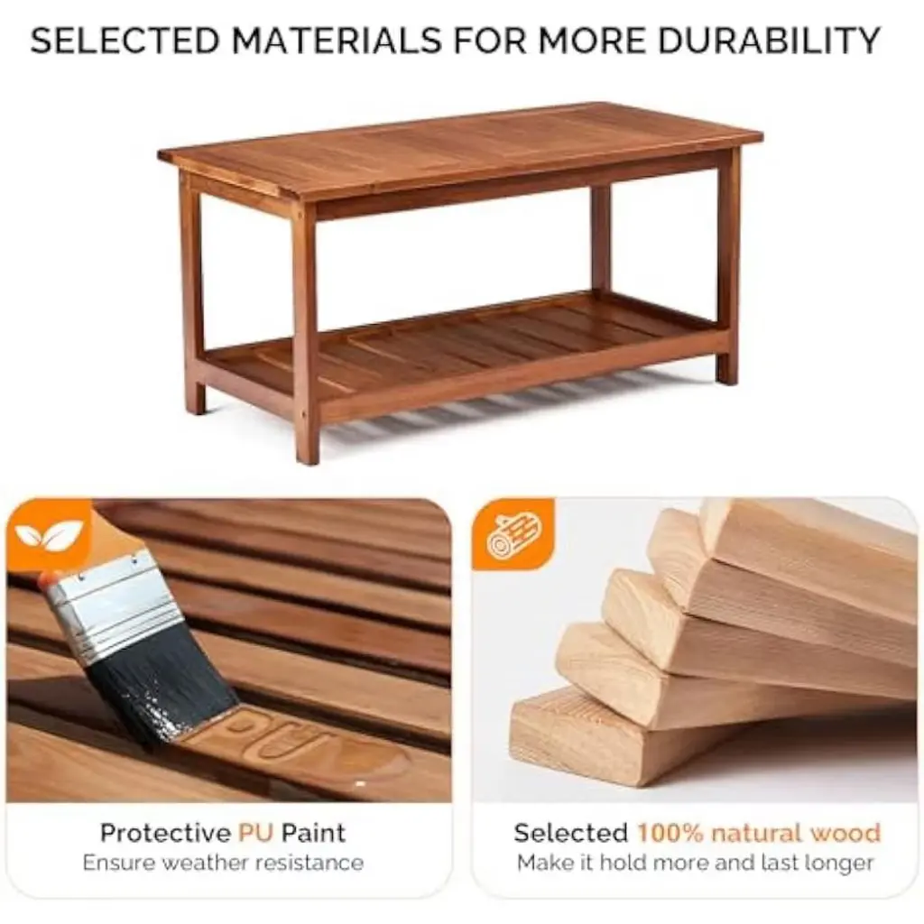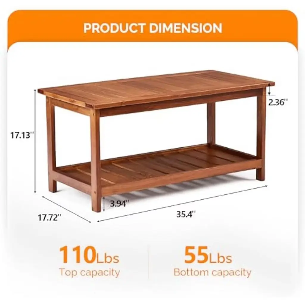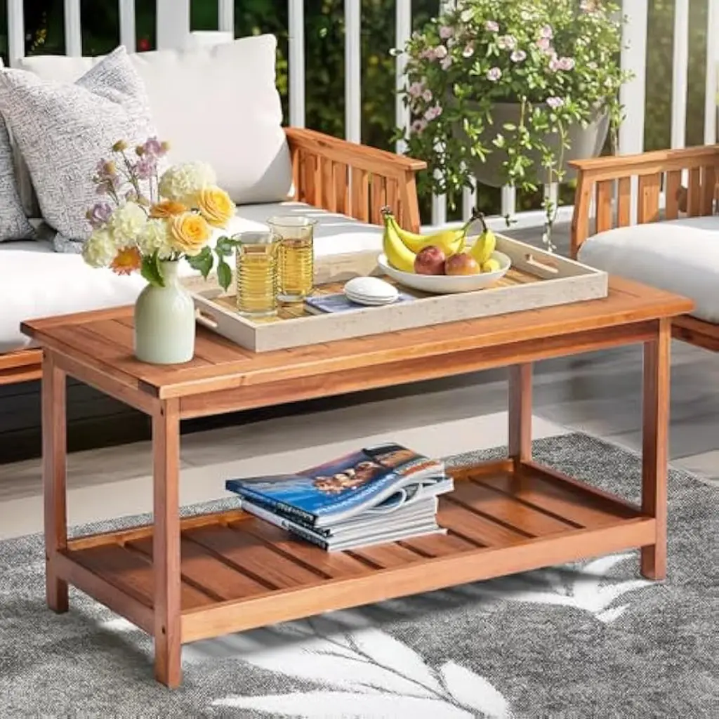 Vingli Outdoor Wooden Coffee Table, 2-tier Storage Rectangle Patio Coffee Table For Outside, Solid Wood Low Outdoor Table For Balcony Porch And Deck
