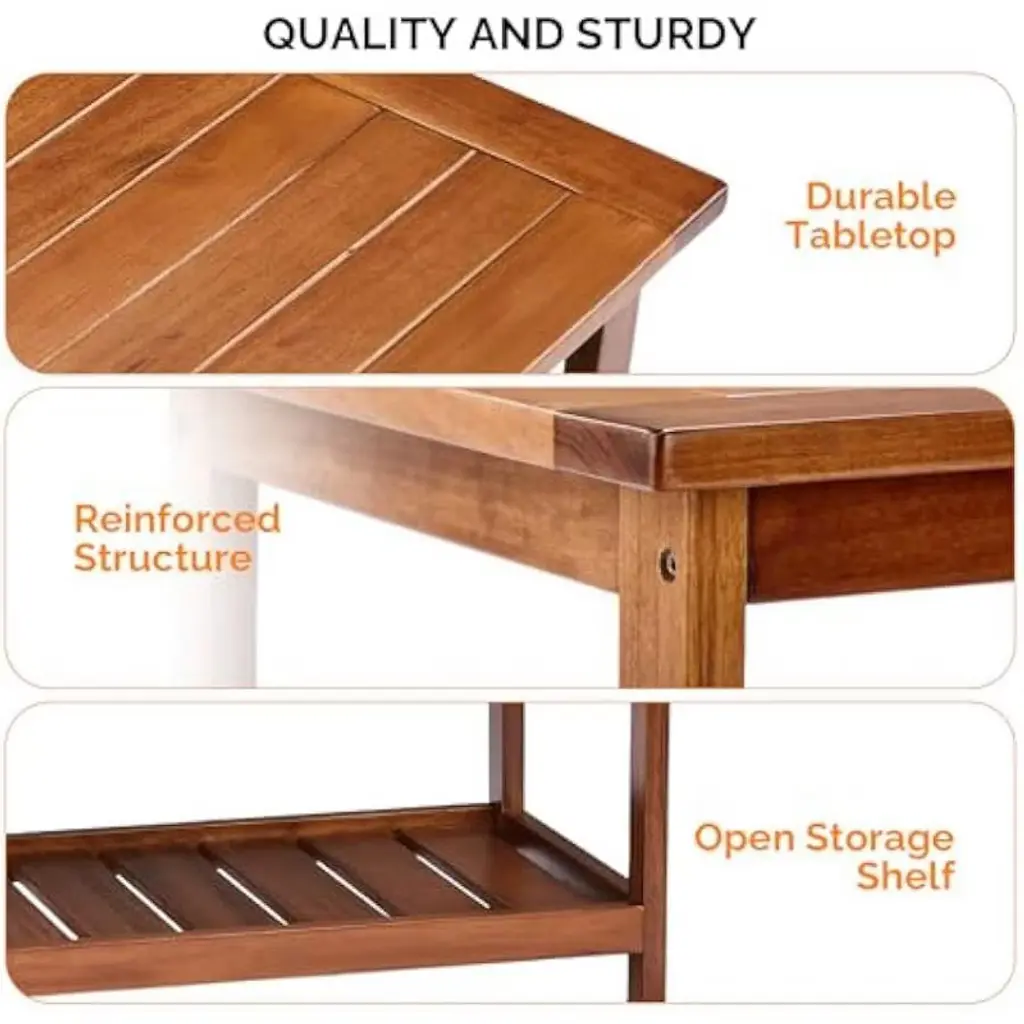 ▌Material & Protection ✓ 100% natural solid wood ✓ 3-layer PU coating ✓ Smooth rounded corner design ▌Precise Dimensions Top Tier: 35.4"L x17.72"W Bottom Shelf: 33.46"L x15.55"W Height: 17.13" (floor to tabletop) ▌Usage Scenarios ◆ Outdoor tea/coffee service station ◆ Garden party snack display table ◆ Poolside drink & towel organizer ◆ Balcony mini gardening workstation ◆ Patio decorative centerpiece ▌Maintenance Guide ▲ Clean with dry cloth ▲ Avoid prolonged water exposure
