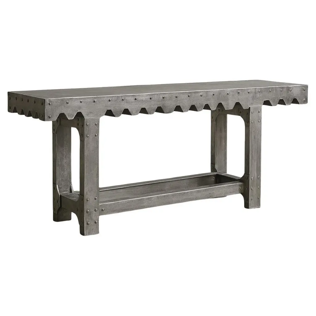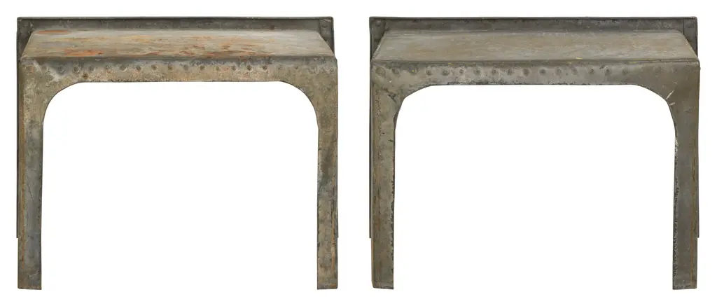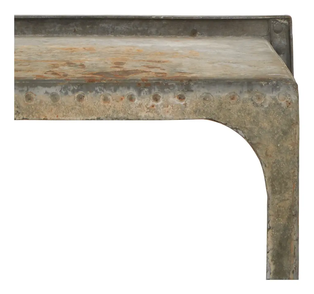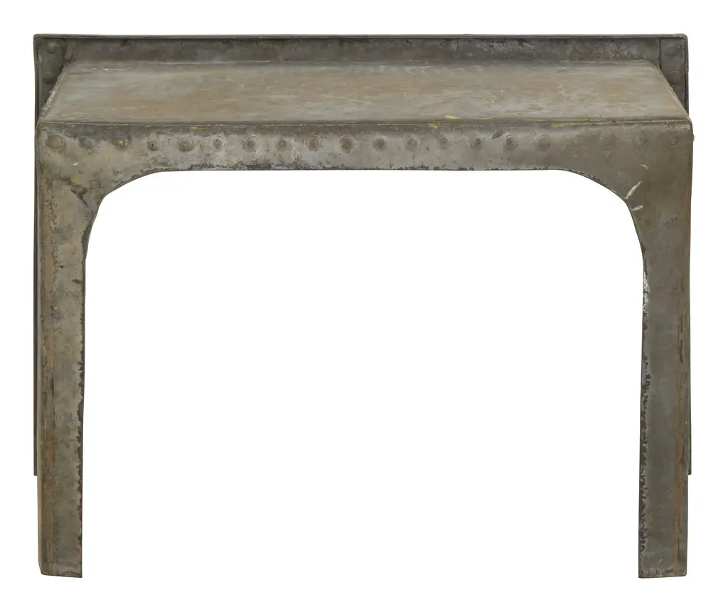 •patinaed metal finish•20th century•french Dimensions•30.5"W x 10"D x 21"H•table height: 19.75" •up to 2 available (pending availability)