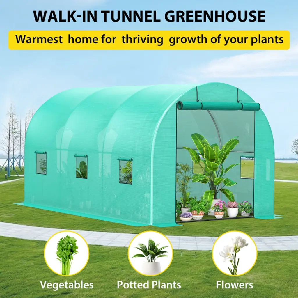 Walk-in Greenhouse For Outdoor Plants With 8 Mesh Vents, Weatherproof Pe Cover & Roll-up Zipper Door - Ideal For Vegetables, Flowers And Gardening