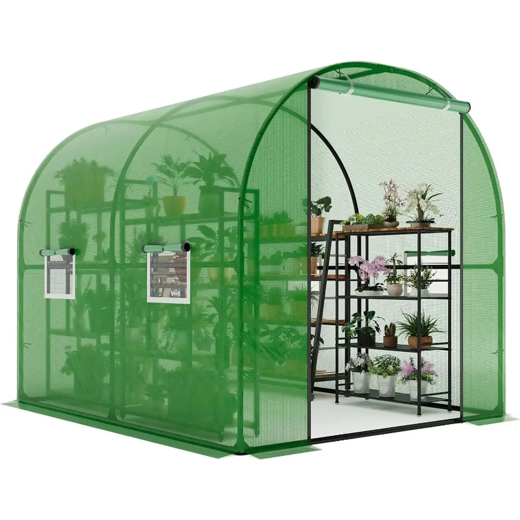 spacious walk-in greenhouse measuring 57" x 57" x 76" offers abundant growing space with a sturdy steel frame and six heavy-duty shelves supporting up to 66 lbs each. The 3-tier design with 12" wide shelves and 20" vertical clearance maximizes plant growth, while the 75-inch high roll-up zipper door ensures easy access. Designed for both indoor and outdoor use, it fits porches, patios, decks, balconies, and gardens. Tool-free assembly and detachable design allow quick setup and portability. For added stability, sandbags or rocks can be used on the bottom cover. Dimensions: Width: 57 inches Depth: 57 inches Height: 76 inches Shelf Width: 12 inches Vertical Space Between Shelves: 20 inches Shelf Capacity: 66 lbs each Material: Steel frame with durable cover What You Get: One walk-in greenhouse with roll-up zipper door Six heavy-duty shelves (3-tier design) Assembly instructions for tool-free setup Ropes and anchors for enhanced stability After-Sales Service: We provide clear assembly guides and responsive customer support to assist with setup or any concerns, ensuring a seamless and satisfying gardening experience.