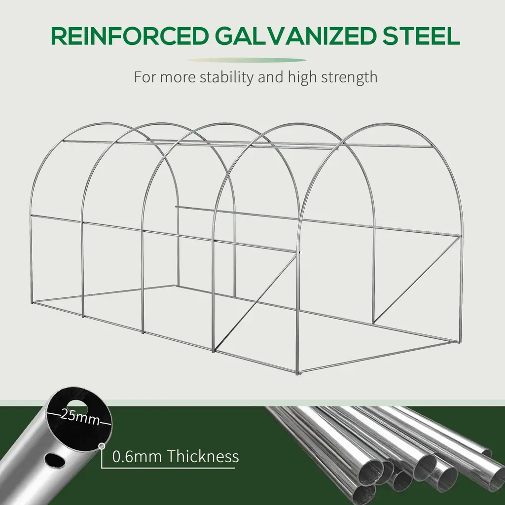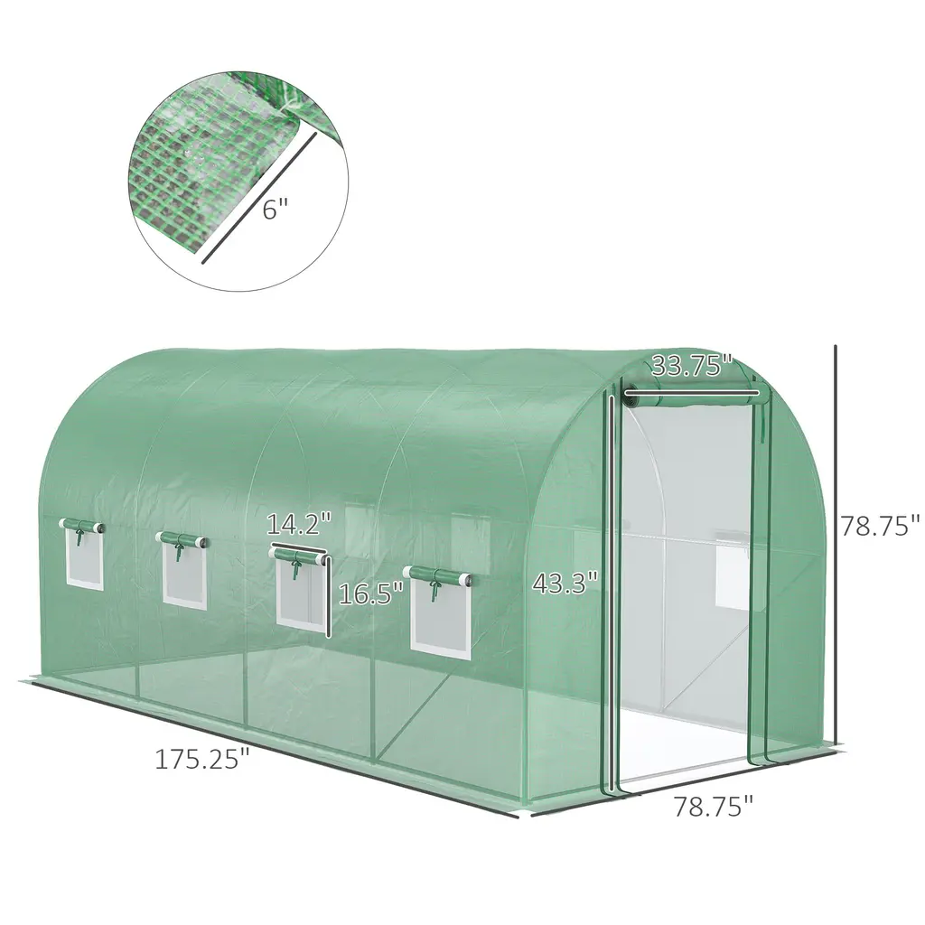 Walk-In Tunnel Hoop Greenhouse With Mesh Door & 8 Windows, Large Green House For Plants, Flowers, Vegetables, Green - Steel