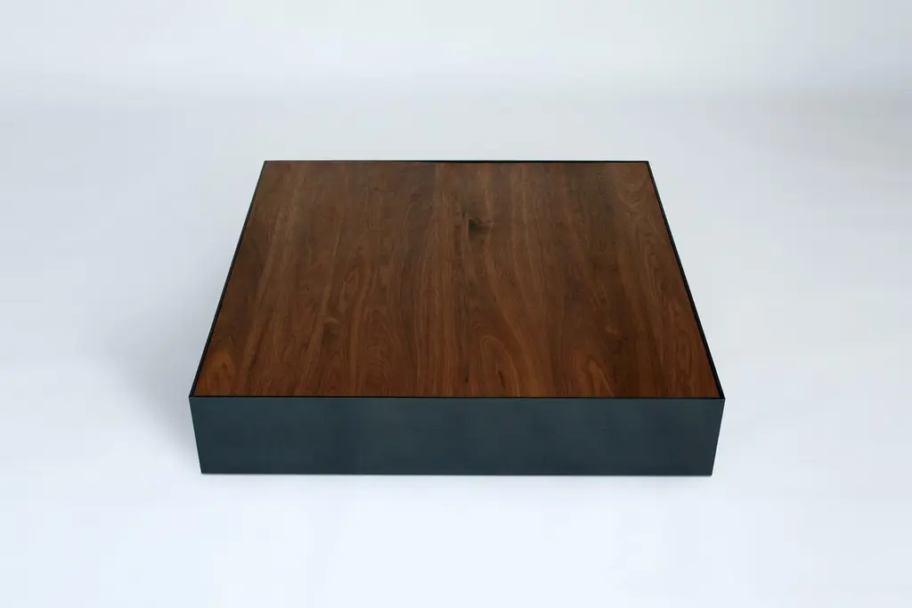 Walnut Ballot XL Coffee Table by Phase DesignDimensions: D 106,7 x W 106,7 x H 22,9 cm.Materials: Walnut and black powder-coated metal.Aluminum coffee table with solid wood top, available in walnut, white oak, or ebonized oak. Available in gloss or flat, black or white powder coat finish. Prices may vary. Please contact us.The Ballot Box XL invokes the spirit of minimalist artist Donald Judd. Crisp lines unify to create a subtle yet sophisticated statement. The table is constructed out of aluminum and is offered with a durable powder coat finish. The sunken top is constructed of solid lumber.Autodidact award-winning designer Reza Feiz has always been drawn to the strength in simplicity. Lured to Southern California by its inventive, creative spirit, he quickly discovered his true calling among the vast community of creators and artisans whose skills and ingenuity expertly transform imagination into reality.Inspired by Los Angeles’ iconic landscape and the compelling beauty of the places and spaces he encountered, he envisioned furniture, lighting and tabletop accessories, fabricating them from contemporary materials with the help of a tightly knit coterie of craftspeople.The resulting restrained yet revolutionary pieces have garnered enthusiasm from an international audience.He’s been lauded as “An American designer who influences world design”, a “Style Pioneer” and “One of a group of select young designers who represent the leading edge of discovery in design.” Architectural Digest’s Mayer Rus noted that his “wide-ranging collections make a strong case for the enduring appeal of restrained modern design.” Surface Magazine raved that he “imbues his work with a 21st-century edge. His astute sense of restraint keeps the designs relevant in a constantly evolving industry, without needing to subscribe to trends.”“Reza Feiz imbues his work with a 21st-century edge. His astute sense of restraint keeps the designs relevant in a constantly evolving industry, without needing to subscribe to trends.”