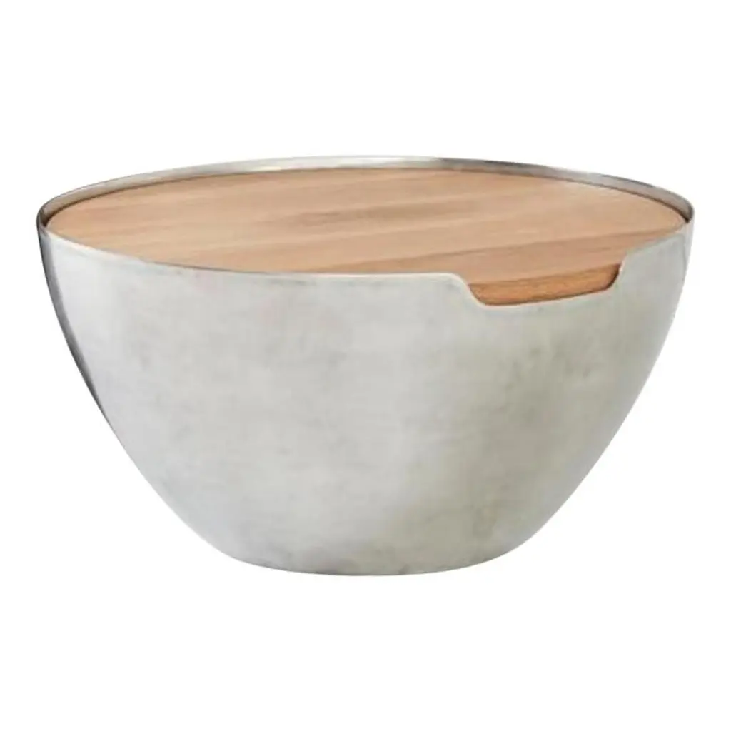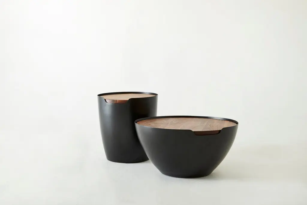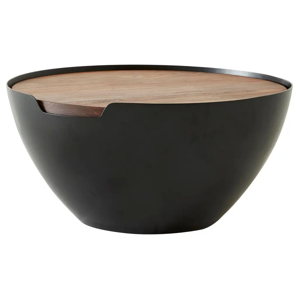 Walnut short basin coffee - side table by Hollis & MorrisDimensions: diameter 26" x height 13" Materials: Solid wood. Spun aluminum. Hardwax oil, powder-coated metal. Also available in natural oak, black oak, glass, and white oak. And, white or black powder-coated or customized finish. Anodized metal upon request.Beauty through thoughtful, function-inspired design. A spun aluminum basin is accented by rich oak or walnut, offering sheltered storage. Robust hidden brackets support the solid wood tabletop while a subtle dip in the metal provides a mouth to access the contents within.Based out of Toronto, Hollis & Morris takes its name from an intersection in Halifax where the company started as a series of garage explorations in design. A steadfast commitment to function with a distinctive approach to design. Hollis & Morris creates handmade furniture and lighting which carefully balances modern and honest designs. Versatile, well crafted, and timeless. Pieces by Hollis & Morris easily complement residential, commercial, and hospitality spaces. Driven by respect towards natural and honest processes, trademark integrations of solid wood and metal celebrate the inherent strengths of each material, resulting in thoughtful, quality pieces made to last with you throughout the years.