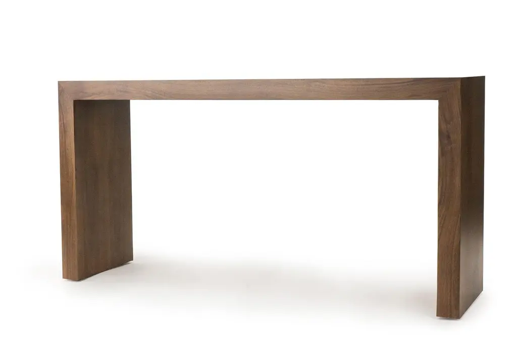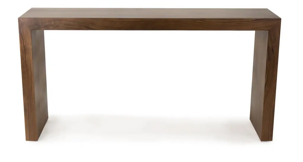 Our classic Waterfall table has been built with a walnut veneer and finished with a clear matte lacquer. Size finish are customizable.Measurements:60" W x 16" D x 30 1/2" HCustomization may change price.