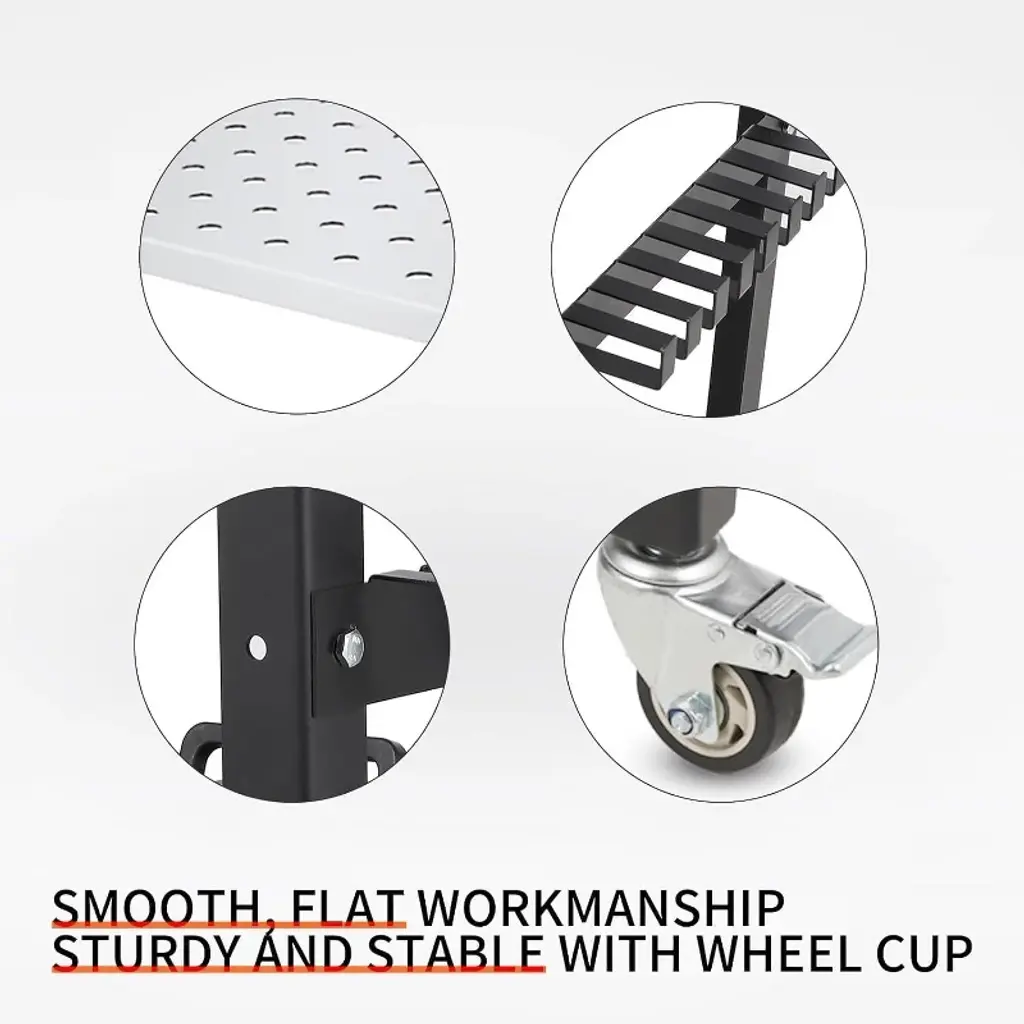 This heavy-duty welding table is a versatile and durable workhorse suitable for any workspace, from professional shops to construction sites. Built from high-grade carbon steel, it supports up to 1200 lbs and resists wear, rust, and heat damage for long-lasting use. Equipped with four locking caster wheels, it offers smooth mobility and stable positioning when needed. The table features convenient tool slots and a spacious lower shelf to keep your welding accessories organized. Easy to assemble with pre-drilled holes and clear instructions, this portable welding cart is ready to use right out of the box, enhancing productivity and efficiency.