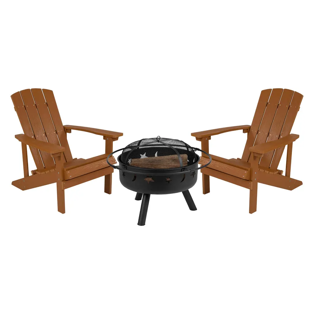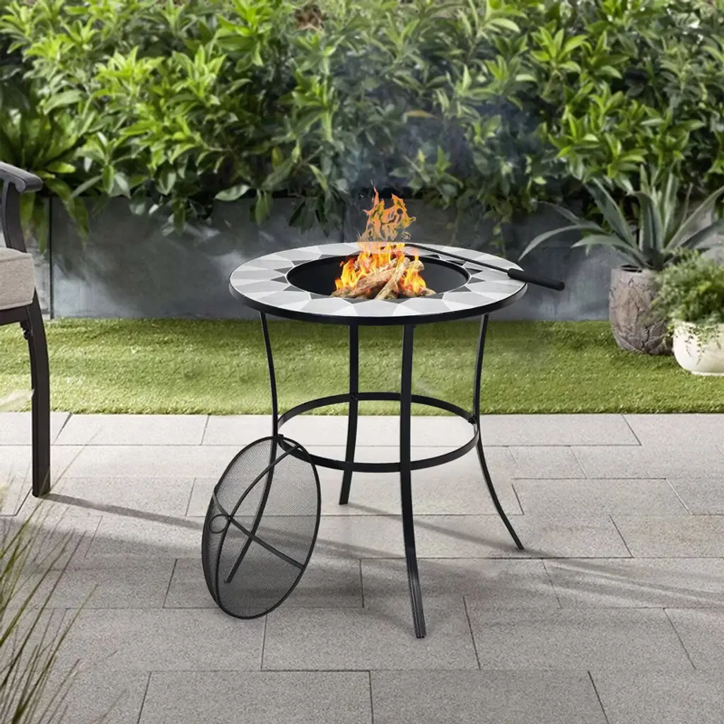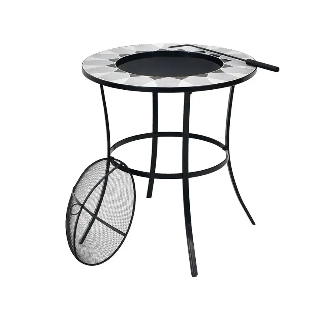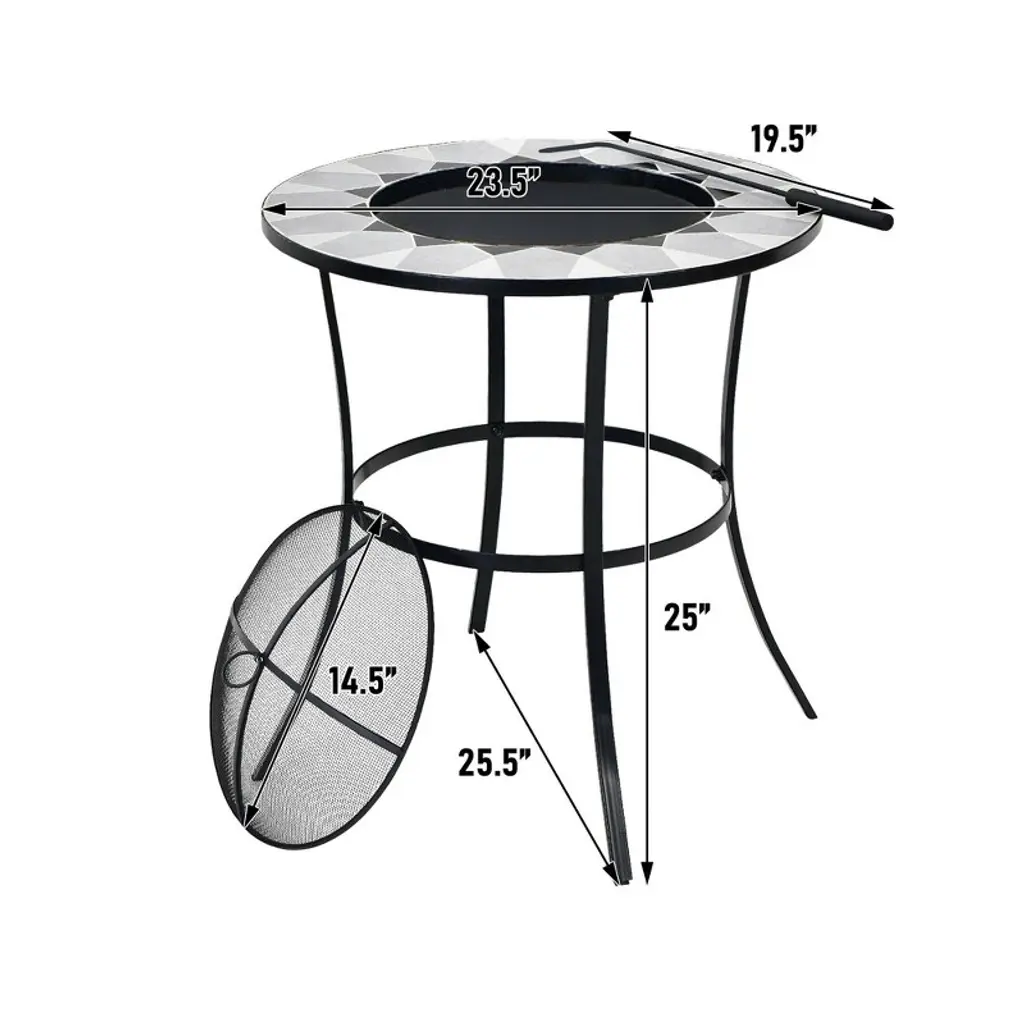 Wellfor 23.5" Wood Burning Dining Fire Table With Mesh Cover & Poker W-10388 Black