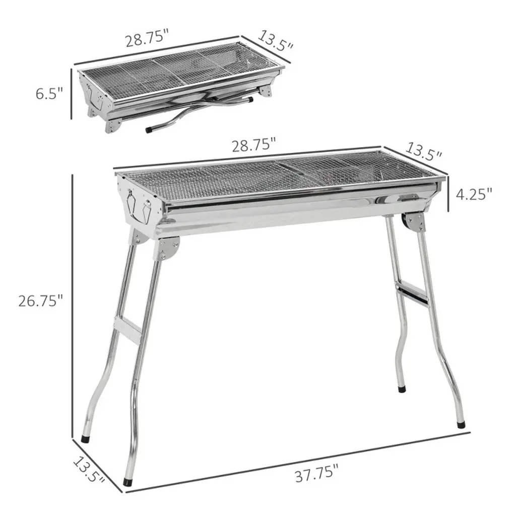 Wellfor Stainless Steel Portable Charcoal Grill Folding Barbeque 781093906621 Silver