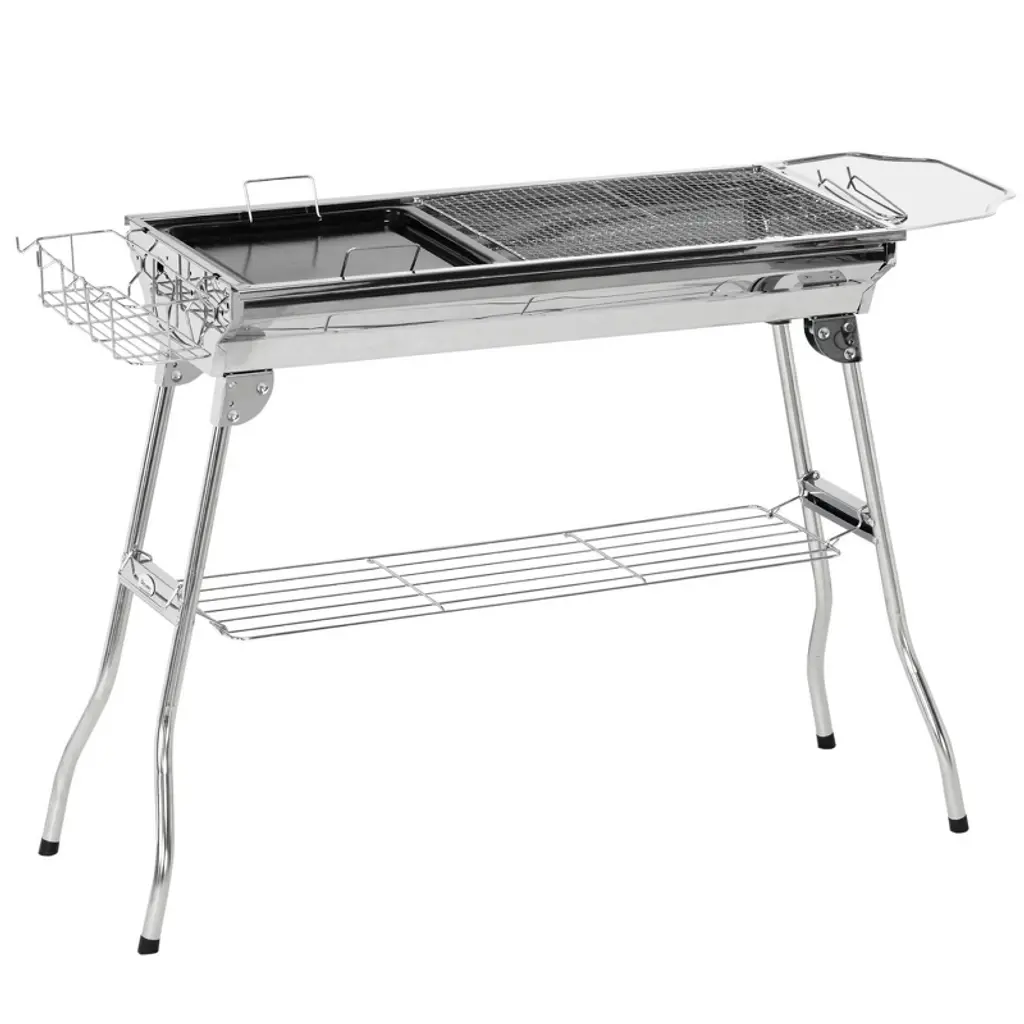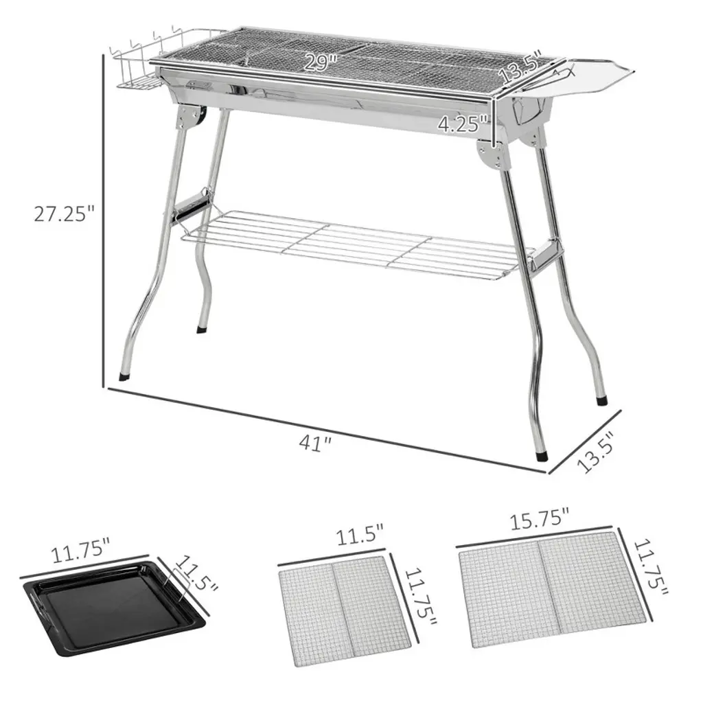 Wellfor Stainless Steel Portable Charcoal Grill With Rack And Shelves 781093906638 Silver