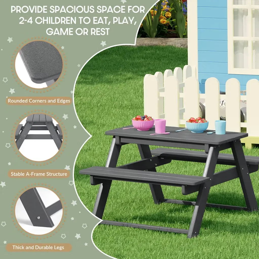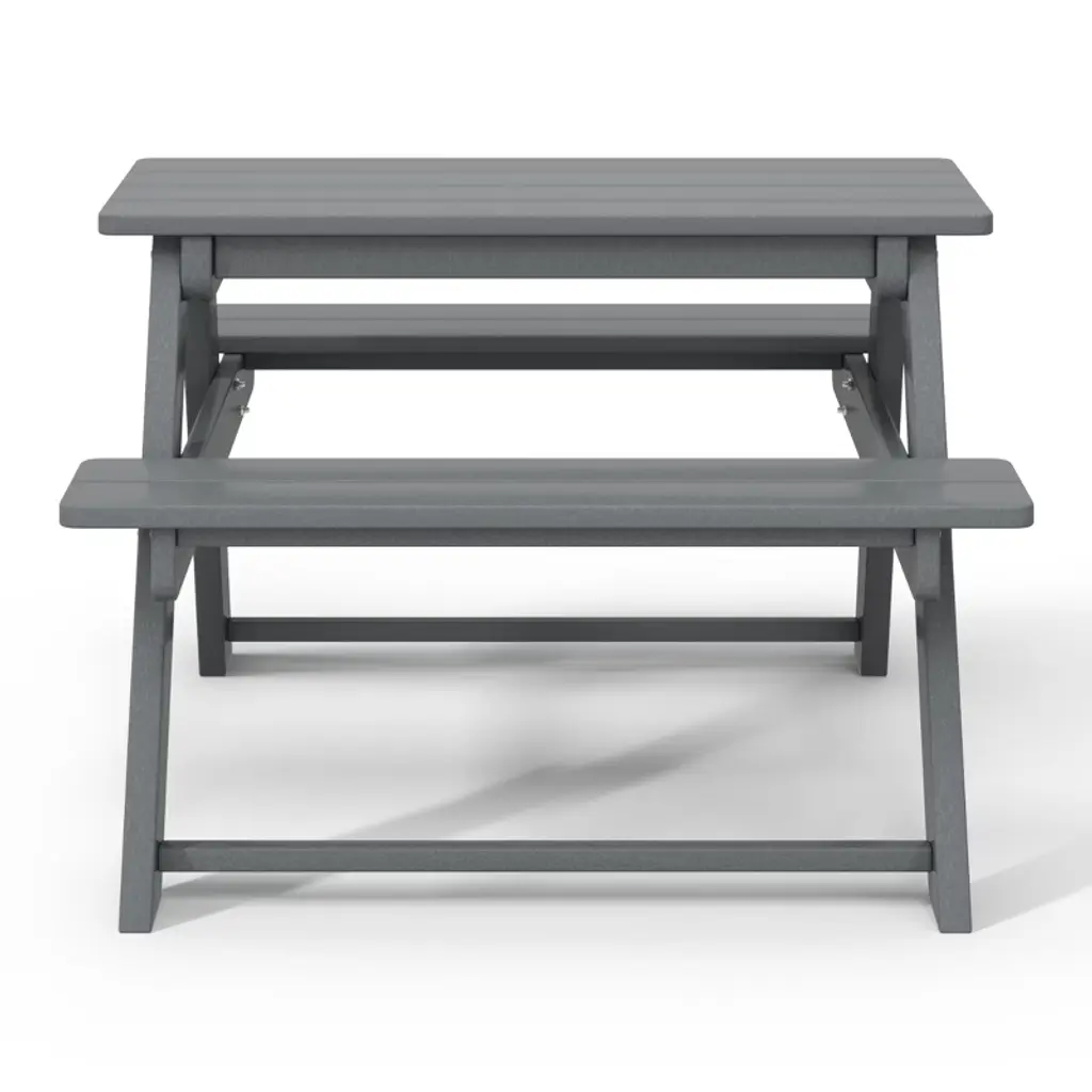 Westintrends Malibu Outdoor Patio Kids Hdpe Plastic Picnic Bench Table, Gray