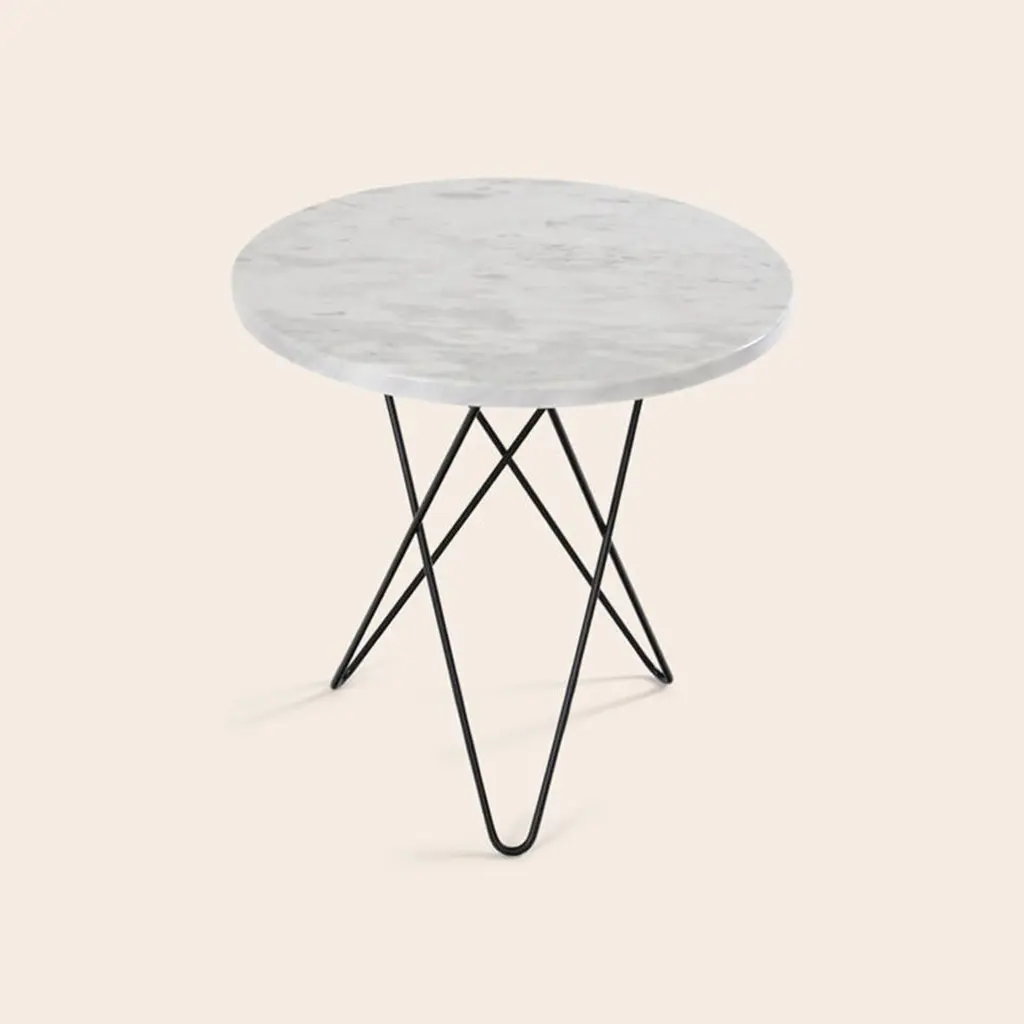 White Carrara Marble And Black Steel Tall Mini O Table By Oxdenmarq