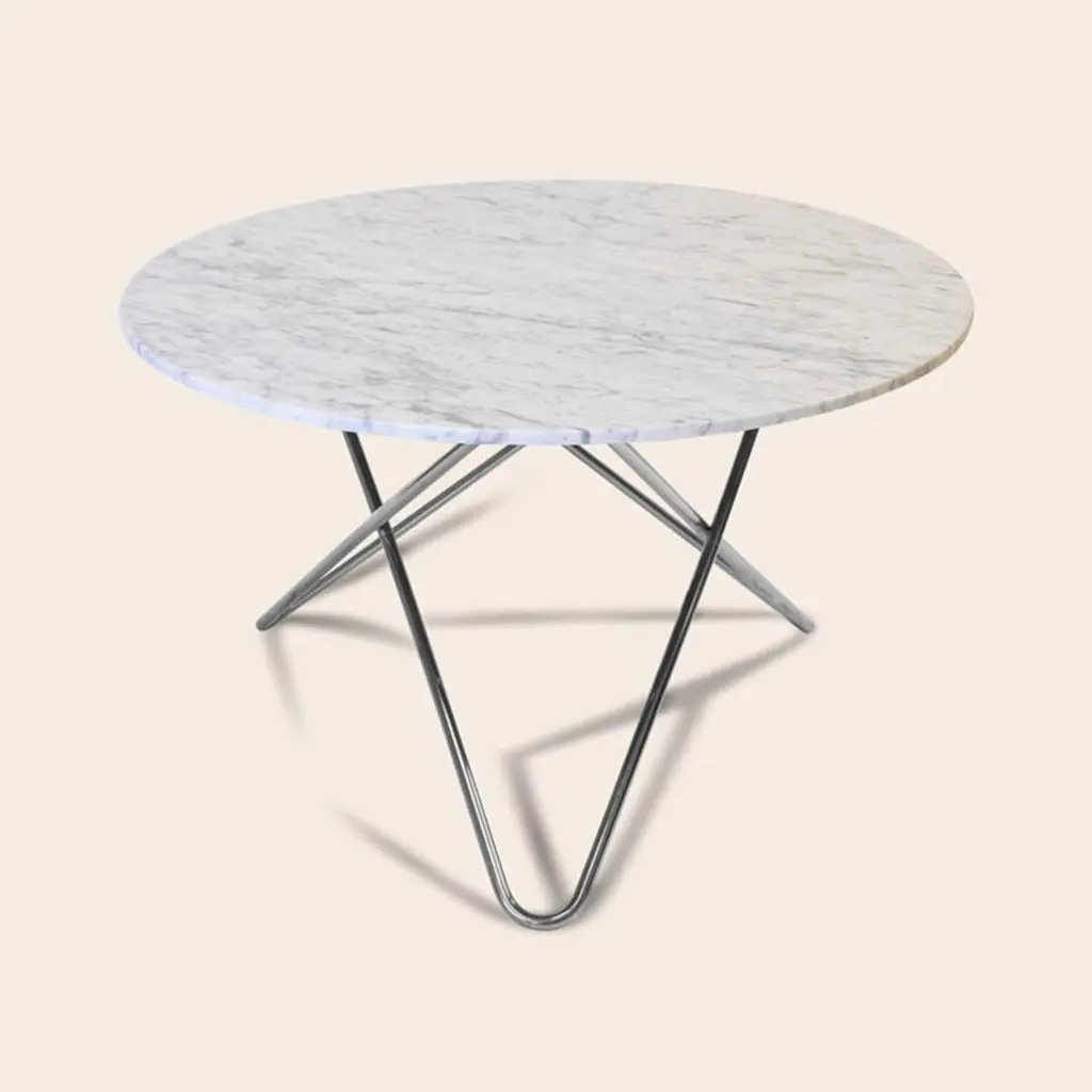 White Carrara Marble And Stainless Steel Big O Table By Ox Denmarq