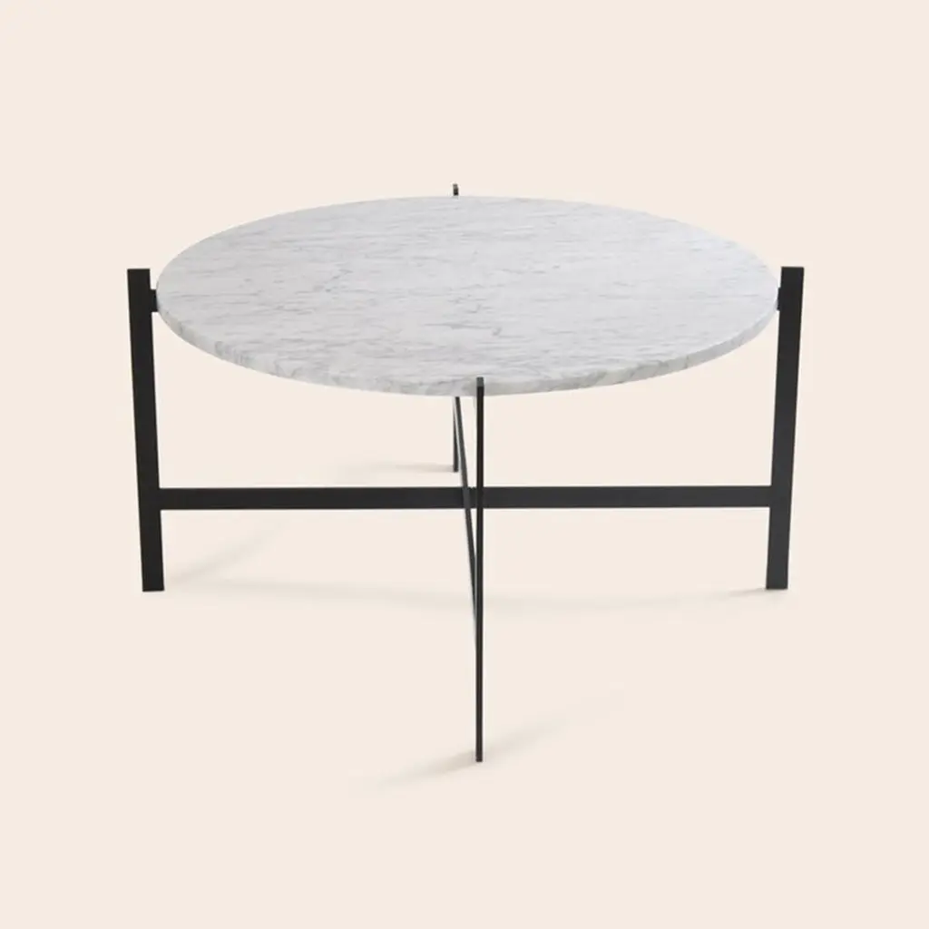 White Carrara marble large deck table by OxDenmarqDimensions: D 87 x W 87 x H 45 cmMaterials: Steel, White Carrara MarbleAlso Available: Different size and top options available.OX DENMARQ is a Danish design brand aspiring to make beautiful handmade furniture, accessories and lighting in natural high-quality materials in fair prices. "When we set out back in 2003, we were primarily working with vegetable-tanned saddle leather thus the name OX was a tribute to our unique leather and the animal providing it.The other half of our name, DENMARQ, is chosen to emphasize that we are a Danish design brand based on the Danish design tradition and that most of our furniture is produced in Denmark. However, DENMARQ not only refers to our home country, but also to the co-founder and designer - Dennis Marquart.Before finishing his design studies at the Copenhagen Design University, Dennis Marquart did a Blacksmith education. This background is extremely useful when developing and designing products."OX DENMARQ handmade products will only get more beautiful as time passes and natural patina sets in.Many OX products are shaped around marble or vegetable-tanned saddle leather. Stone and leather are materials that will, and should, get marks over time. But they will also age with a very special beauty. When you learn to appreciate the beauty of maturity and of time passing, you have learned to appreciate patina the way it should be appreciated.