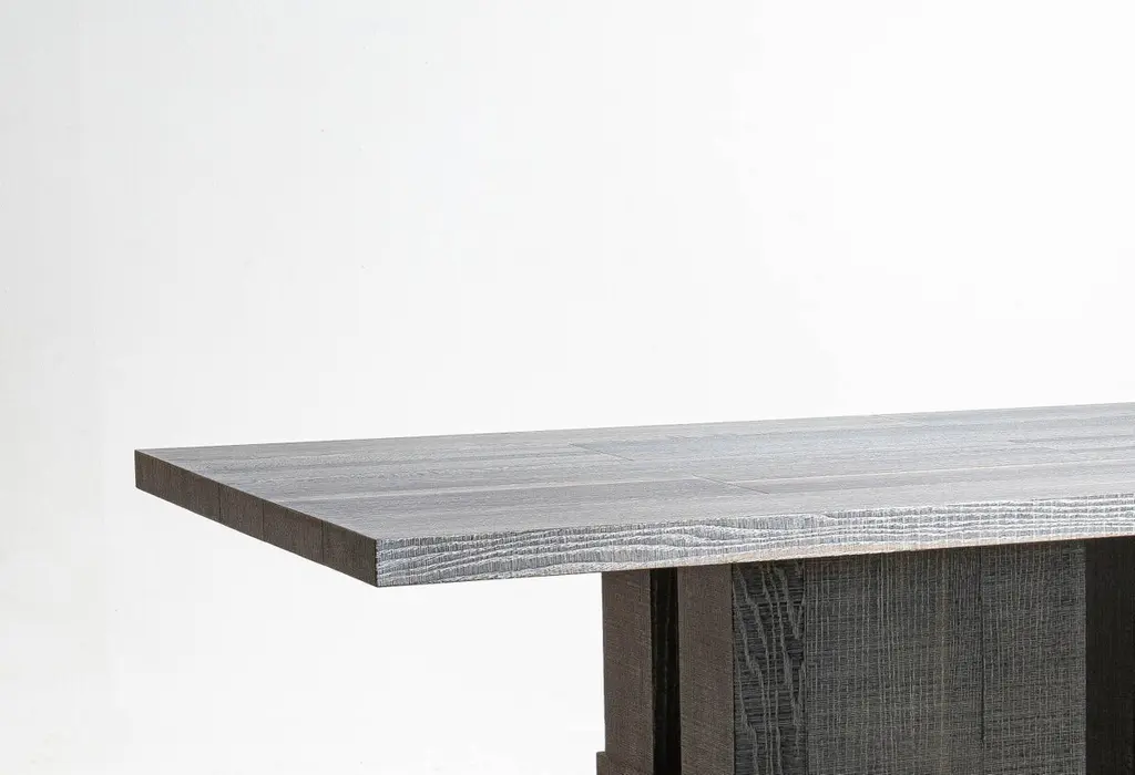 White Layered oak wood table by Hyungshin HwangDimensions: D 200 x W 100 x H 75 cmMaterials: oxidized red oakLayered Series is the main theme and concept of work of Hwang, who continues his experiment which is based on architectural composition of layering materials we can easily find around us. This series starts from his childhood memory of an incessantly transforming city with full of geometric architecture. Ever since the beginning of his career when he piled up discarded bricks or concrete pieces to make simple pieces of artwork, he has always experimented with layering.Born in Seoul, 1981, Hyungshin Hwang is a Korean designer based in Seoul. He graduated B.F.A and M.F.A from Hongik University. Currently working in Seoul he has produced a variety of objects and is participating in various projects. He has been articulating ordinary experiences and past memories through creating objects and recently continues his work with his idea of ‘layered series’. These objects premiered at KIAF in 2007, and have since been presented in various shows including DMY Berlin Design Festival.