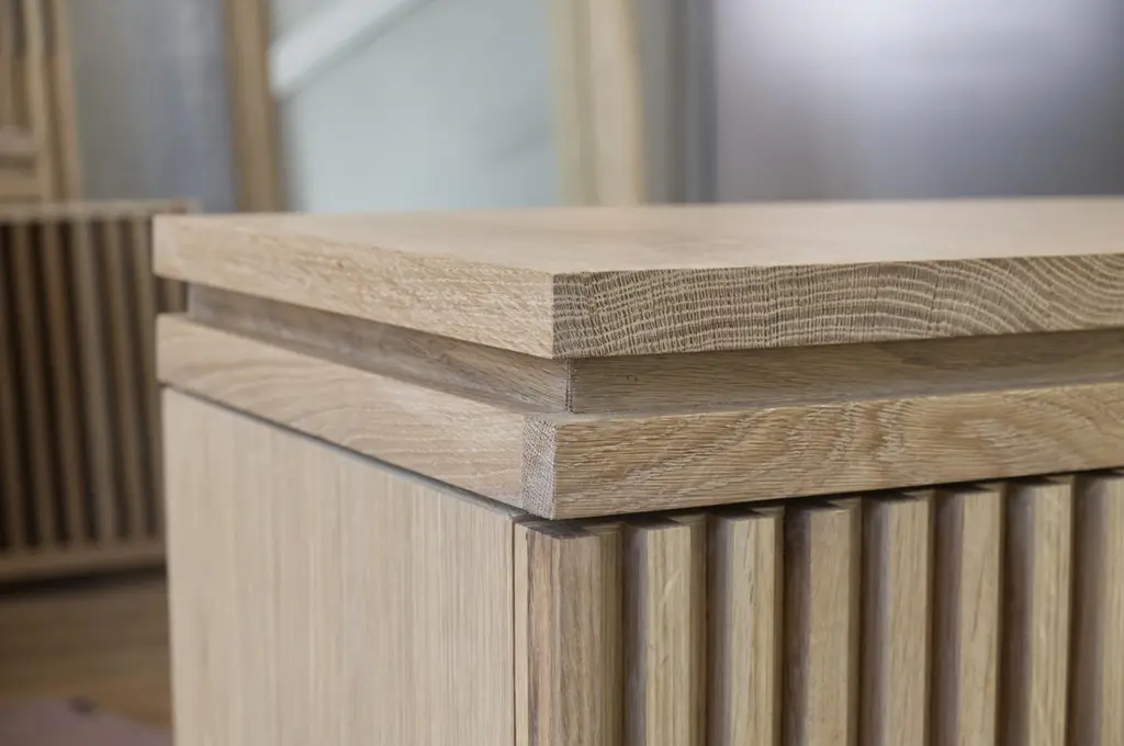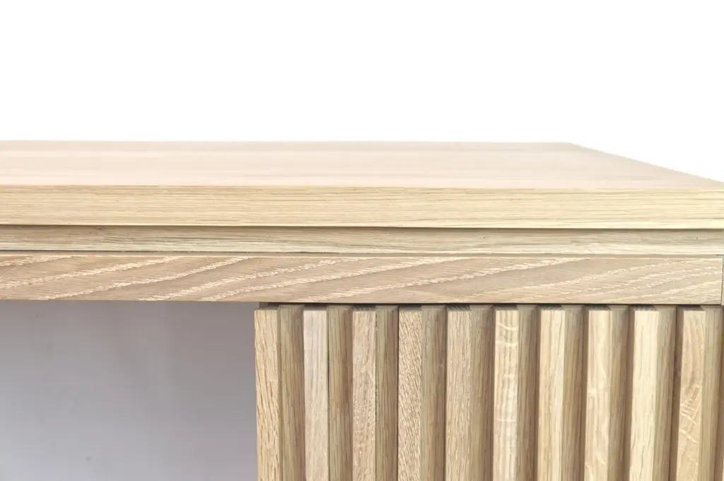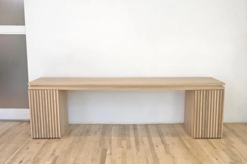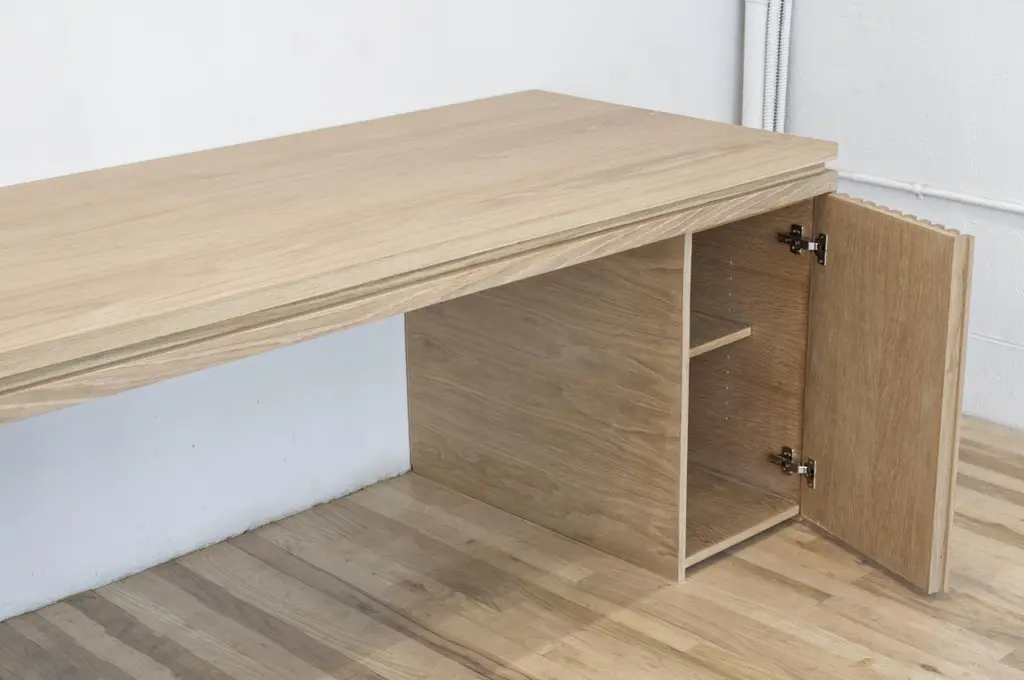 This molten grain walnut table spans in magical chamfered edges.Handcrafted in solid oak, a perfect setup for a desk.This was designed for the interior of a storefront gallery space to serve as a desk with two side cabinet chambers.Using the reveal we highlight heaviness with shadows.Own a Figure Ground original!Dimensions: vary as per custom orders.depth 96"height 30"width 30".