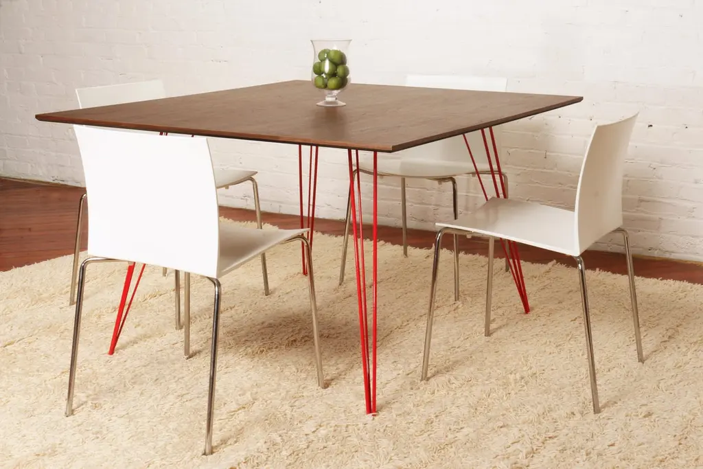 Williams Hairpin Dining Rectangular Table Walnut Red