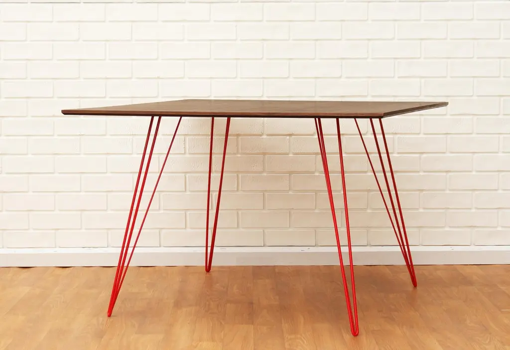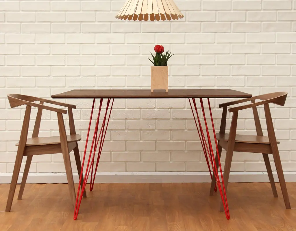 Williams Hairpin Dining Rectangular Table Walnut Red