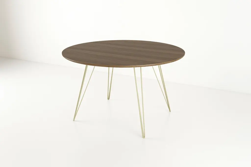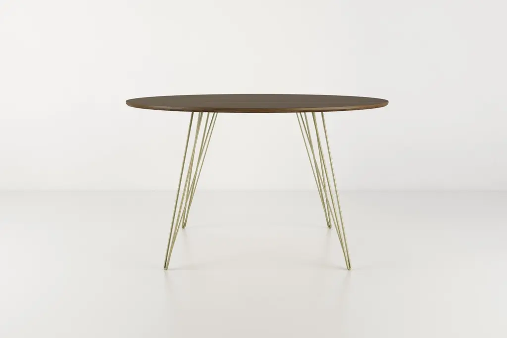 Williams Hairpin Dining Round Table Walnut Brassy Gold
