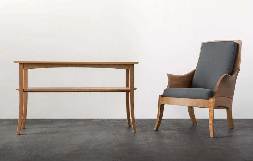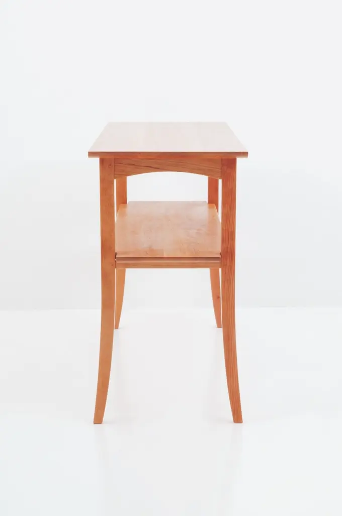 Ideal for narrow spaces or situated along a wall, the Wing Hall Table has sweeping legs and a simple, notched shelf beneath the tabletop, providing space for books, apparel, or other mementos of everyday life. Stunning standing by itself or placed against the back of the Wing Sofa, this piece seems to spring effortlessly from the ground.
