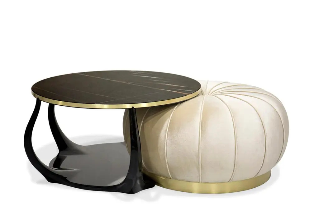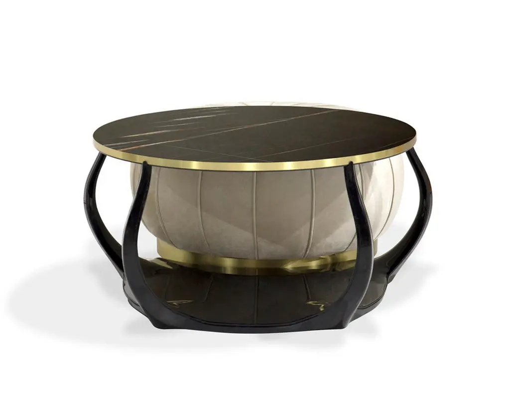 Wood, Marble And Velvet Coffee Table "Ottoman"
