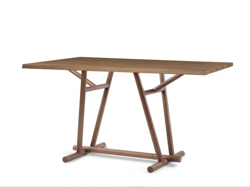 Oriental recalls, joined to craftmanship and design, define Alma design philosophy: Woodbridge tables collection, created by Mario Mazzer, is a marriage of suggestions, coming from distant worlds, and important details. The fundamental principle of this project is the frame, that concentrate with elegance the original concept and the company care in manufacturing. The wooden rectangular top is, indeed, supported by a sculptural base, which form remembers the pictograms of the Empire of the Rising Sun, while its graphic softness determines the profile of support elements, characterized by a round permanent and linear cut.As an interpretation of oriental writing, Woodbridge base accentuates its Asiatic influence: the harmonious game of twists recalls a composition of the traditional chopsticks or a bamboo trunks weave.Available in different finishing, this table collection is proposed in various dimensions and in 75 and 105 height, for a perfect use even in residential than in contract settings.