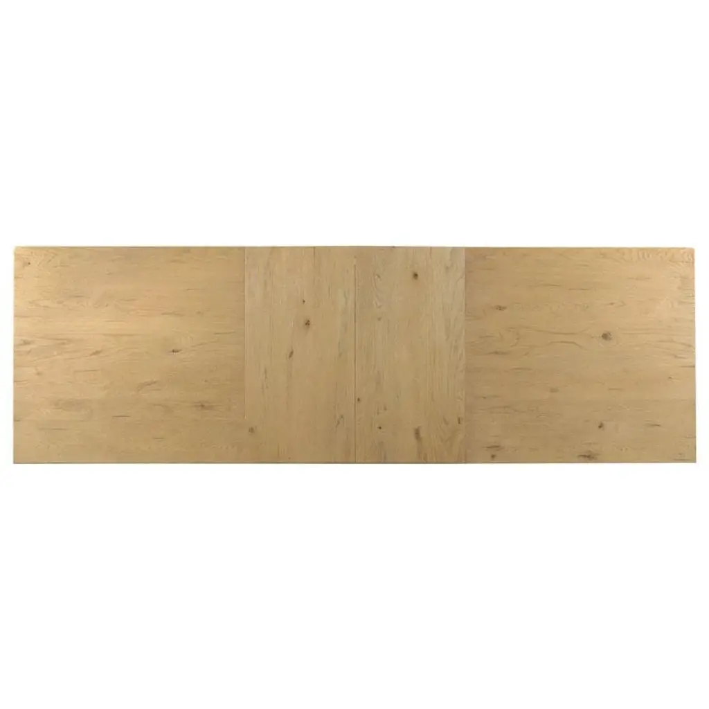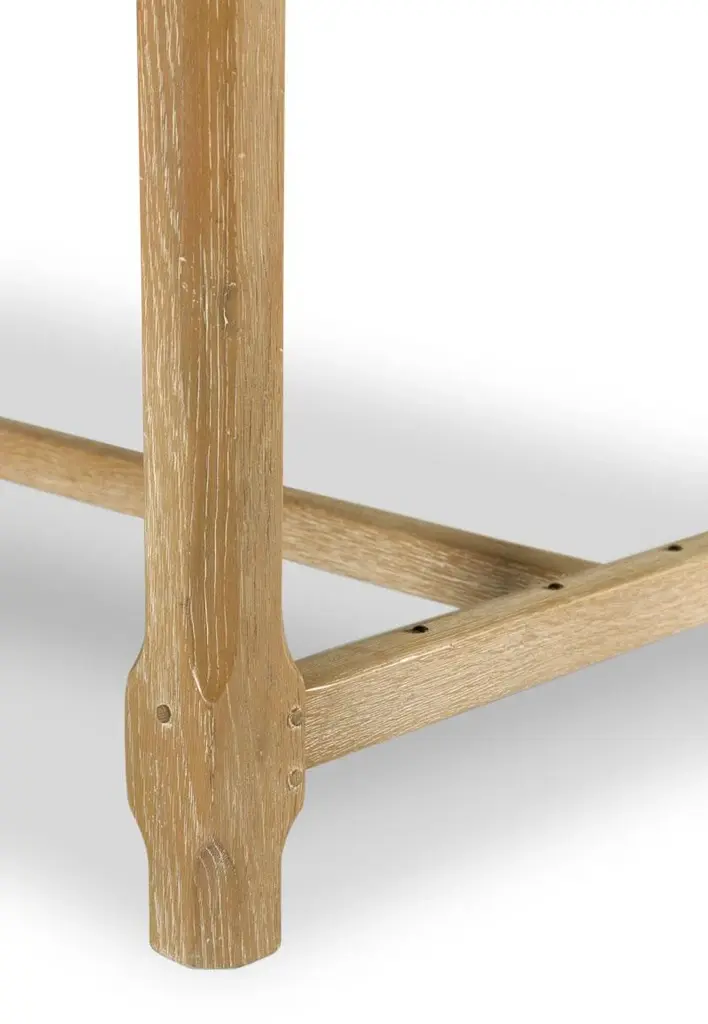 An early 19th century American farm table with a rectangular top that divides at the center exposing a compartment that stores two 20" leaves. The table is raised on squared posts with chamfered details joined by low stretchers. Care Instructions: Wipe with a soft clean cloth