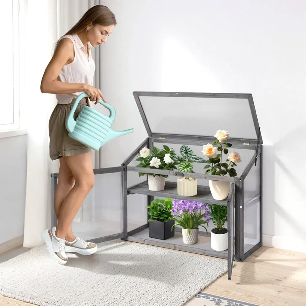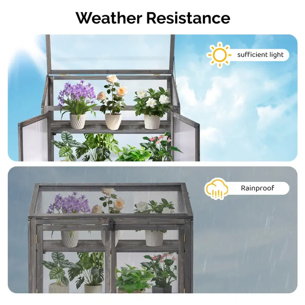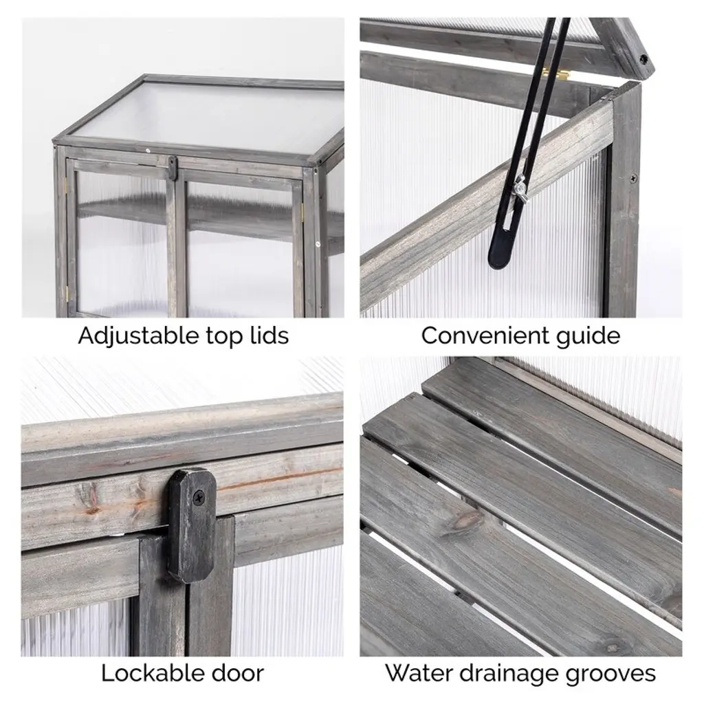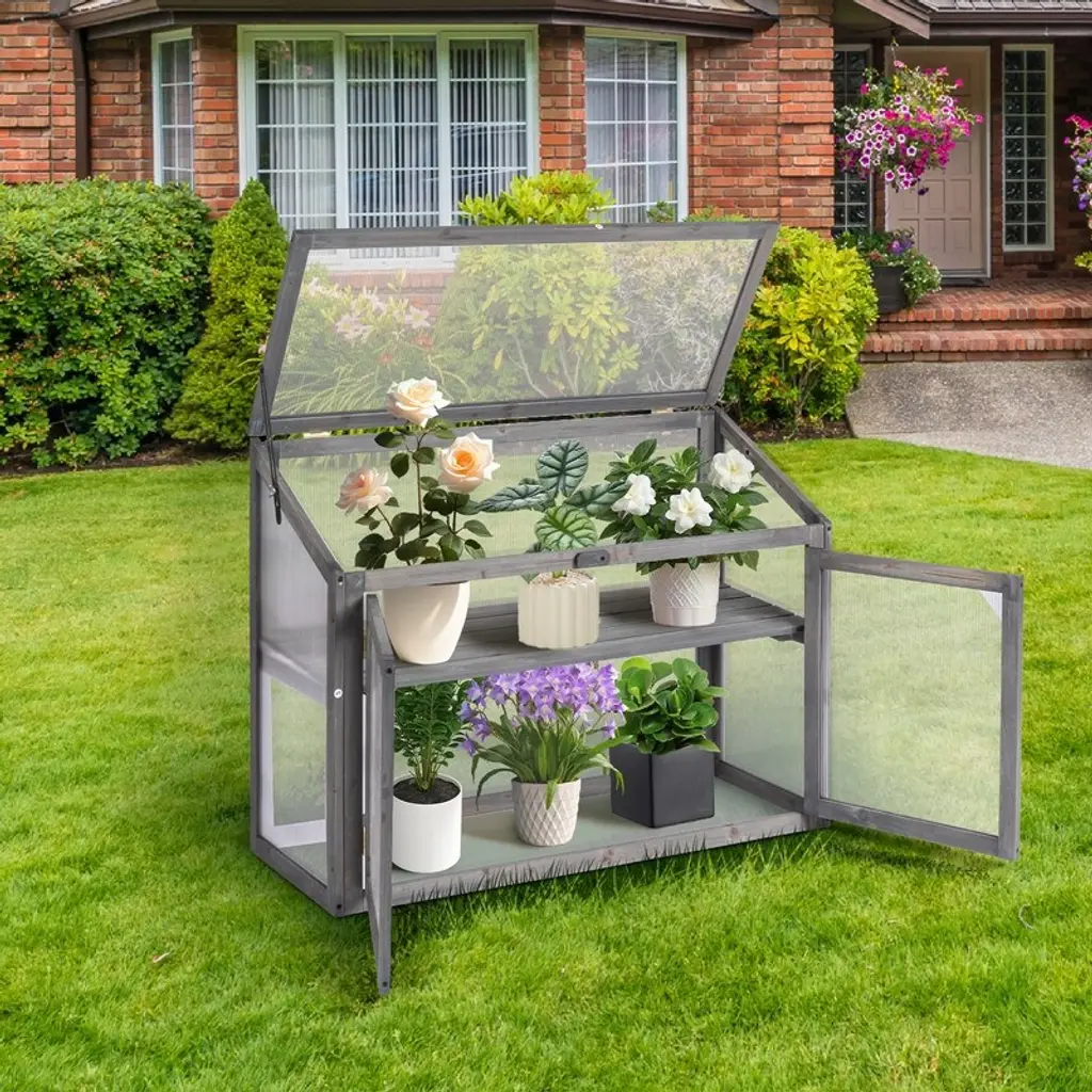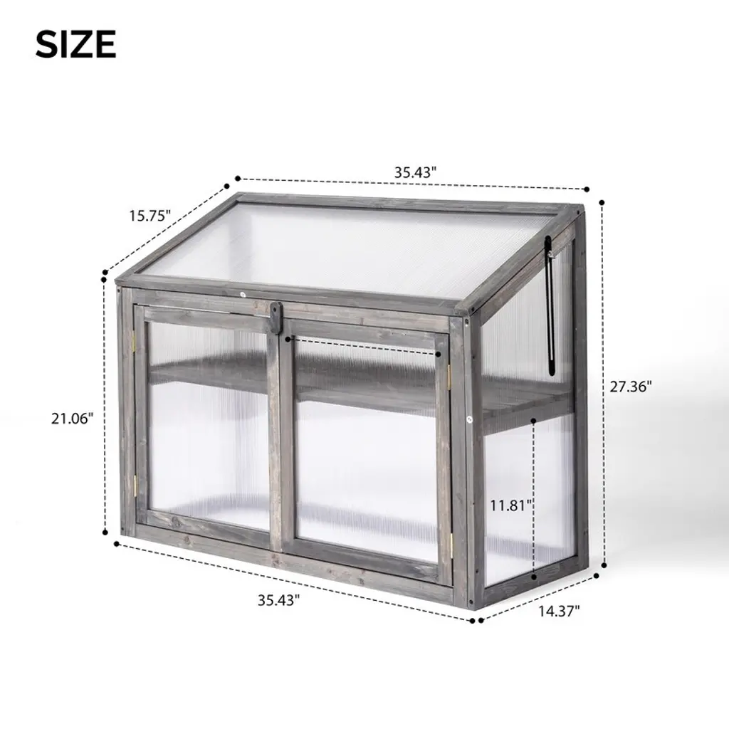 Wooden Cold Frame Garden Portable Greenhouse - 35*14*27