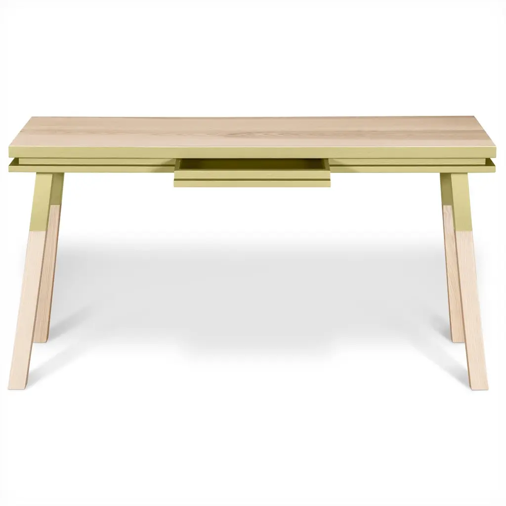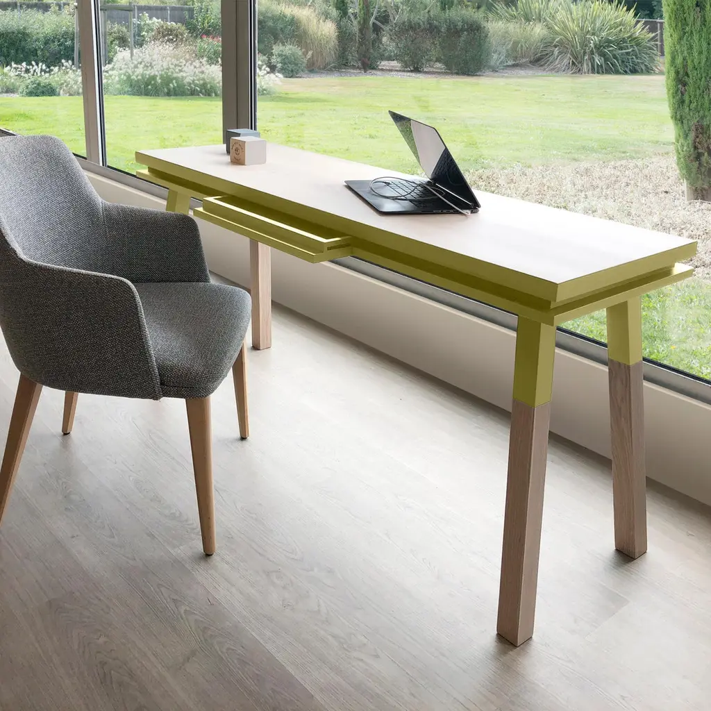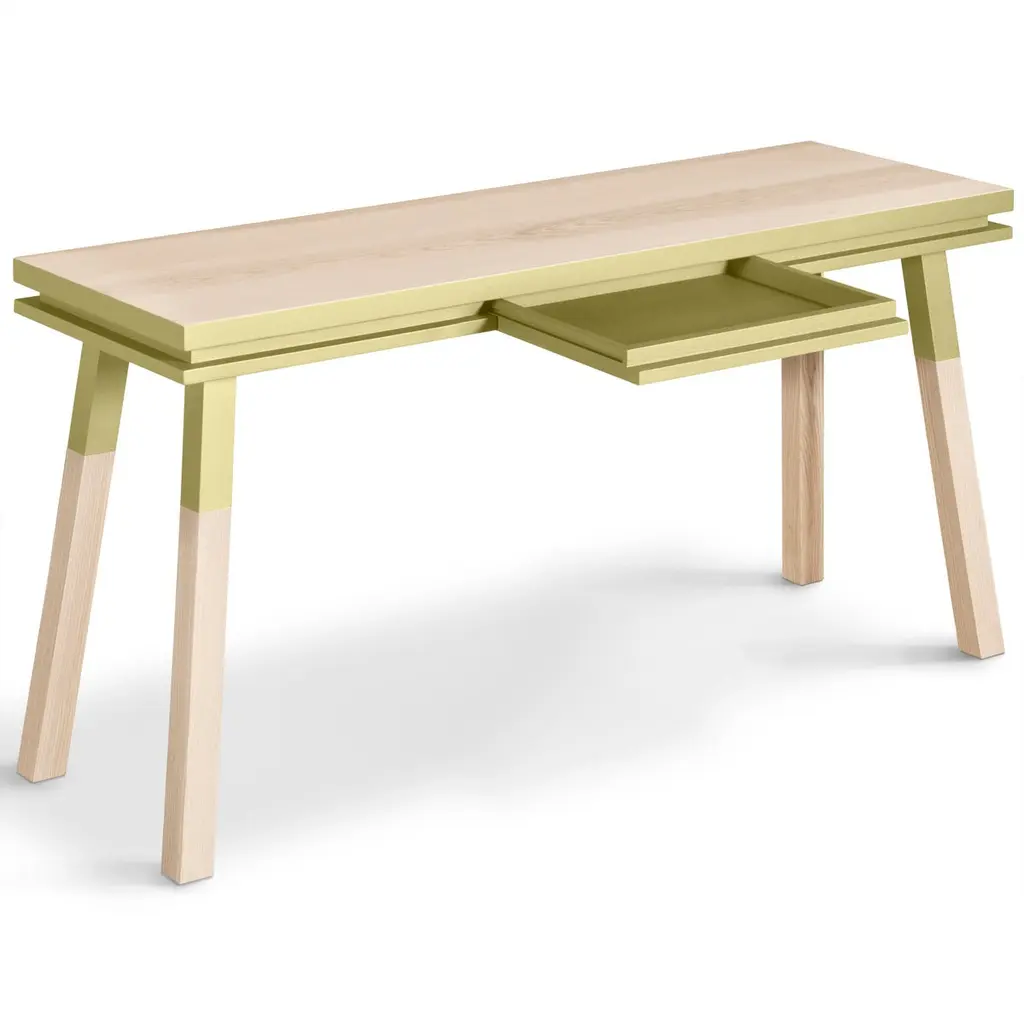 This yellow rectangular console table / desk is designed by Eric Gizard in Paris. It is 100% made of solid ash wood from sustainably managed and PEFC certified French forests. Collection ÉGÉEThis desk is part of the ÉGÉE collection designed by Eric Gizard in Paris. Eric combines the sleek and refined codes of Scandinavian design with natural materials and muted and "trendy" colorful lacquers. Mon Petit Meuble FrancaisProvides exclusively 100% Made in France Furniture. The manufacture and finishes are of very high-end quality, carried out in French craft workshops, in the west countryside of France: Loire and Bretagne. Solid ash comes from sustainably managed French forests.