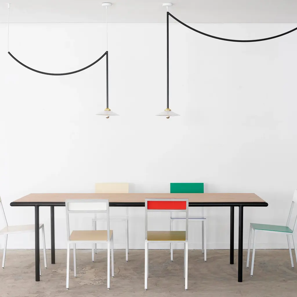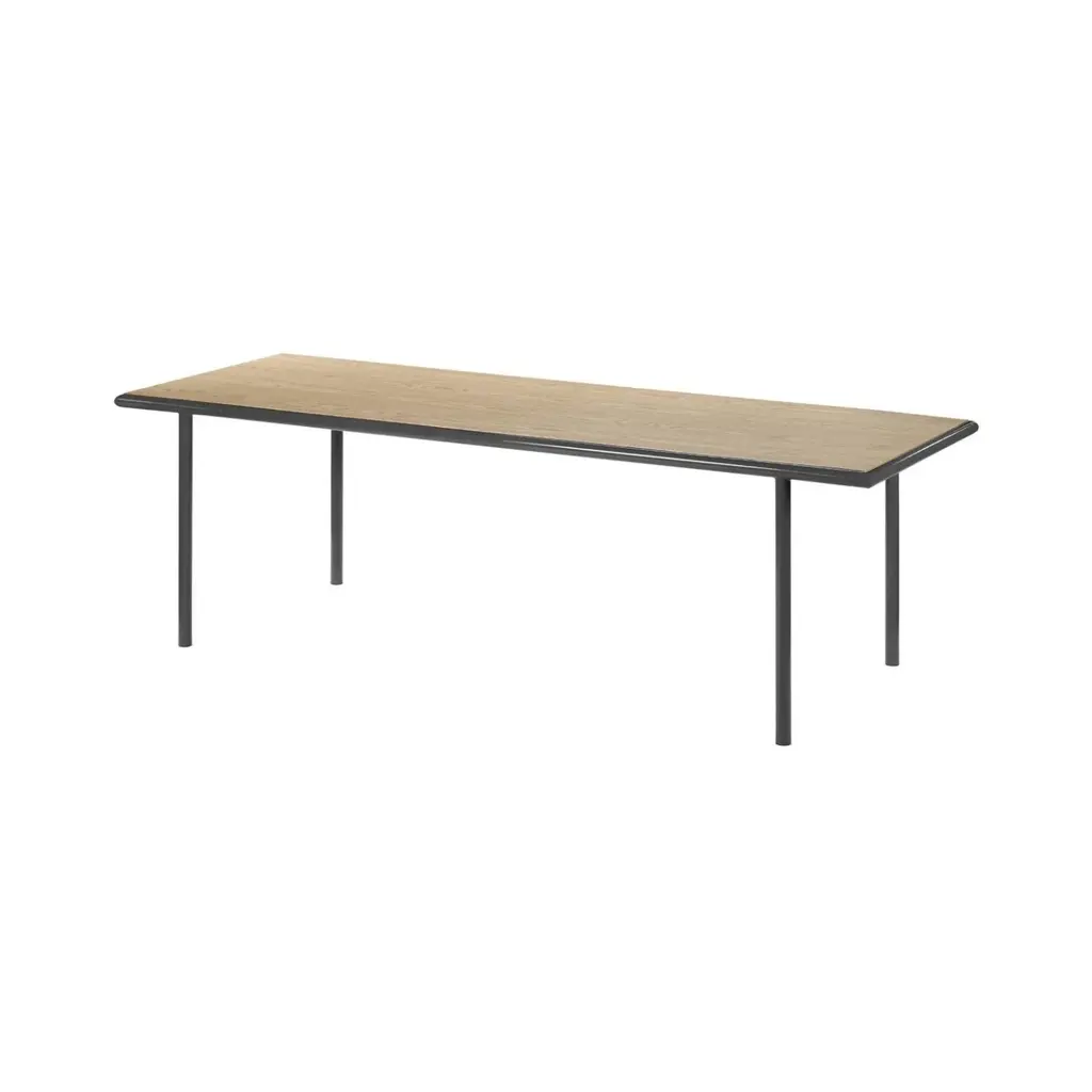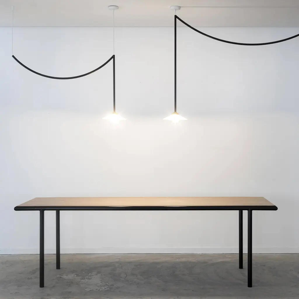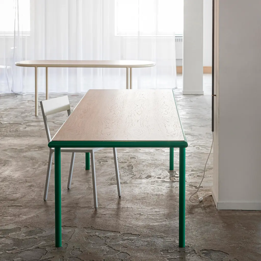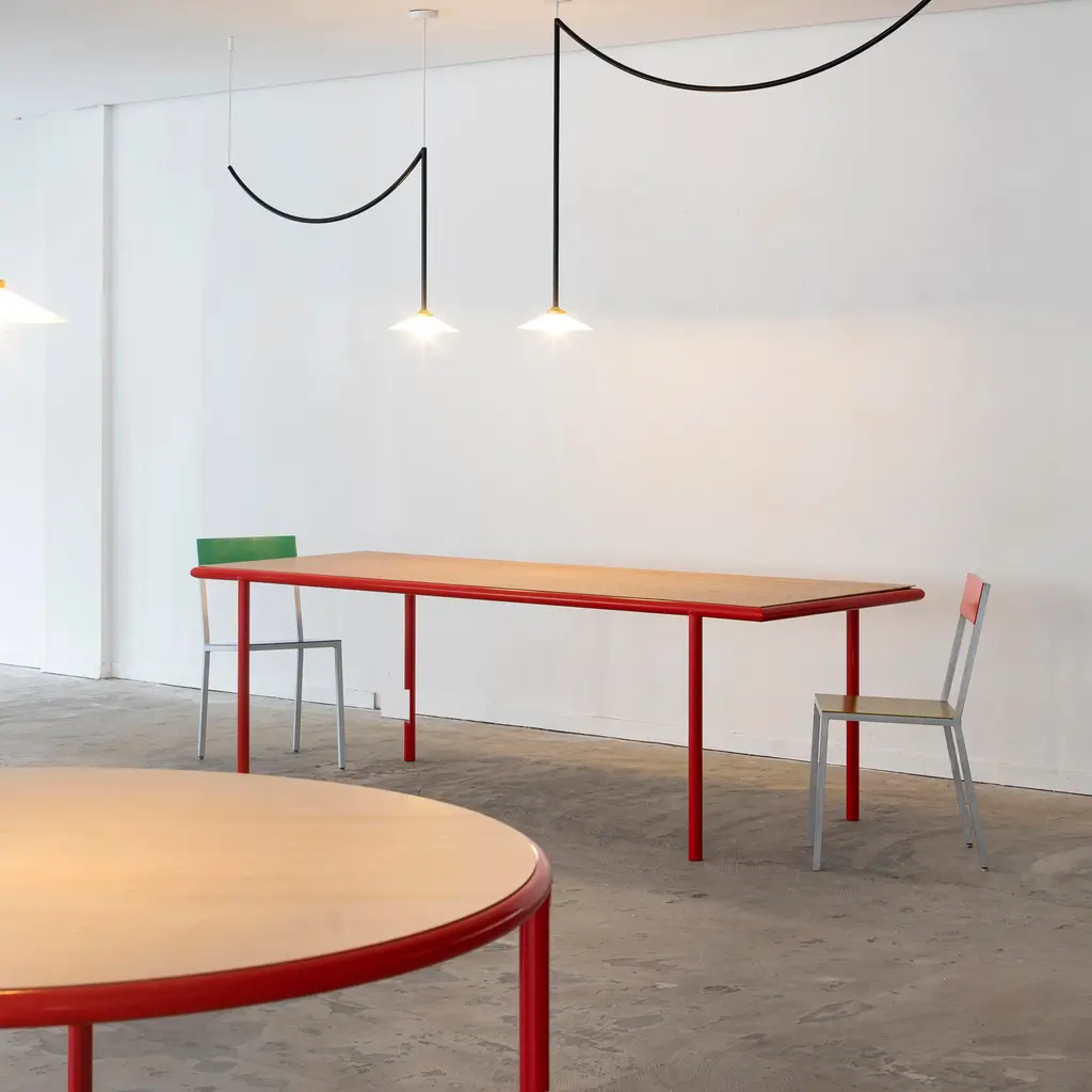 From Valerie Objects' Wooden Table series, a long rectangular version is just the thing for dinners with a big group or to use as an expansive desktop. Design duo Muller Van Severen add visual appeal with a frame and legs fashioned in rounded steel tubing, powder-coated in a range of glossy hues. Combined with the 4 different options for the timber tabletop—light birch, classic oak, rich walnut and a darker cherry—there are numerous possibilities to create the perfect look.
