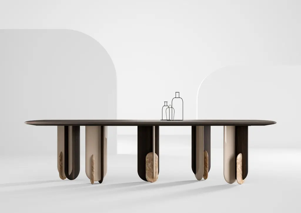 Wooden Top And Modular Legs Talento Rectangular Table By Laurameroni