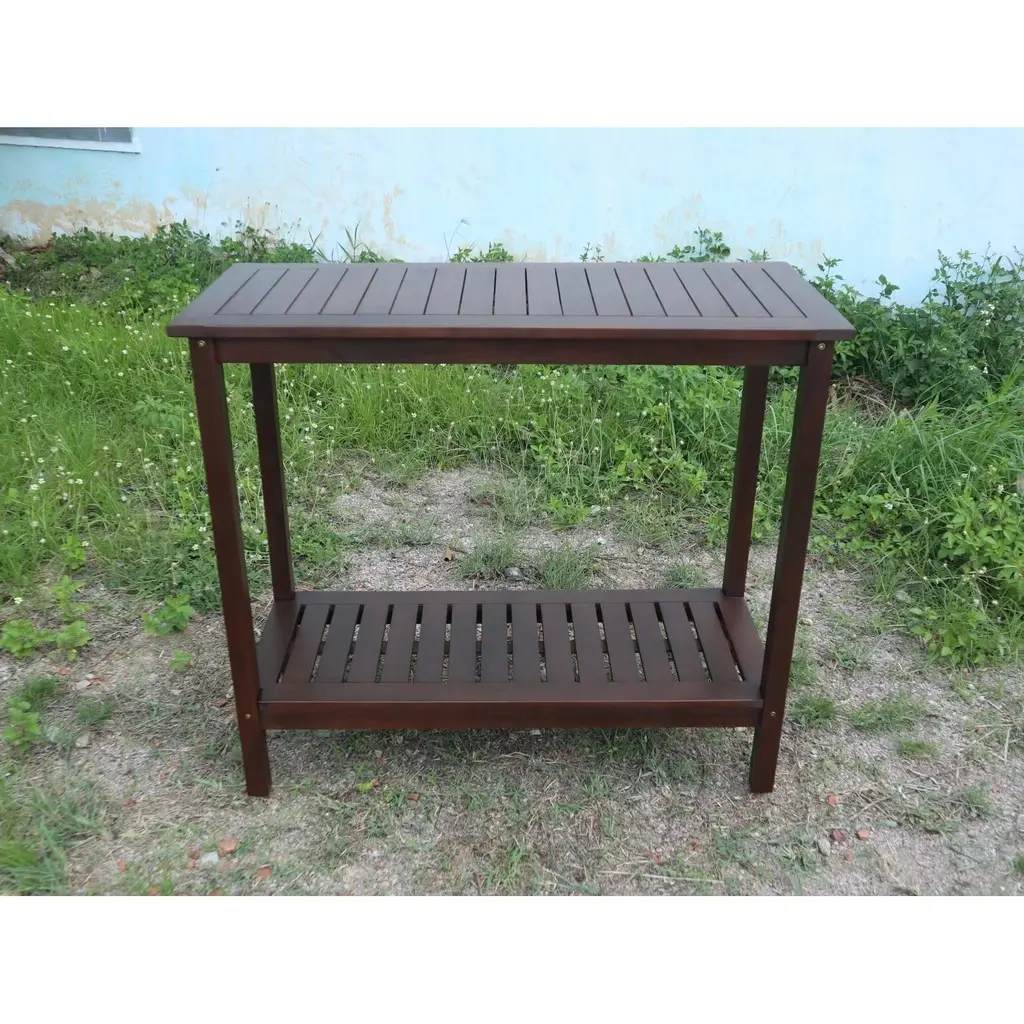 Wooden Workstation For Garden Balcony Garage, Acacia Console Potting Table - Brown