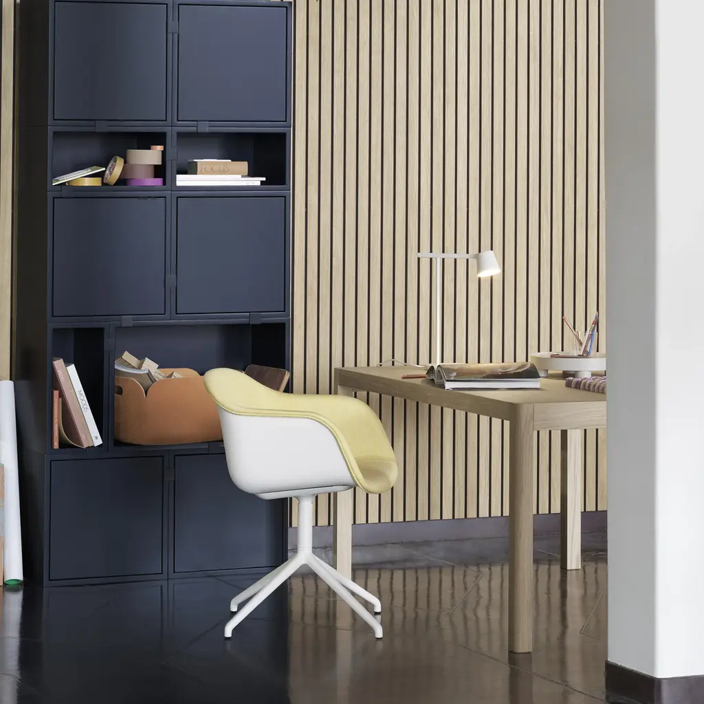 “Workshop Table is a design that is pared down to the essence,” says its creator Cecilie Manz, “allowing for the details and joints to do all the talking.” With renowned Scandinavian craftsmanship, the tabletop is inlaid in the solid-oak frame with its visibly coupled rounded legs. The table’s legs and frame are finished with a water-based lacquer with the tabletop in either matching oak veneer or a warm gray linoleum.