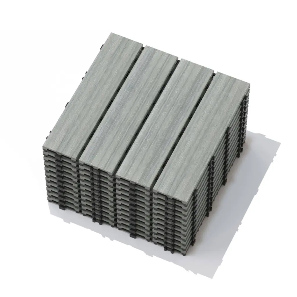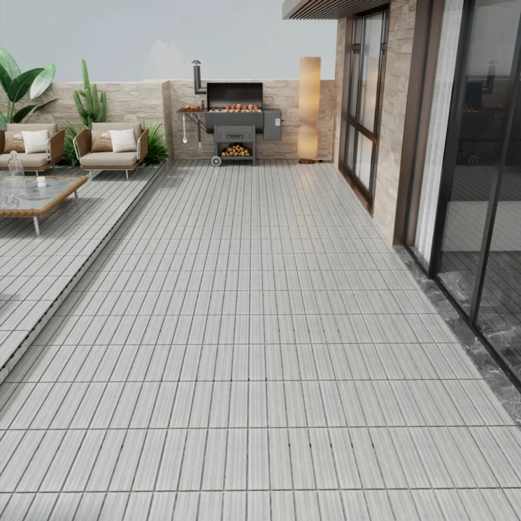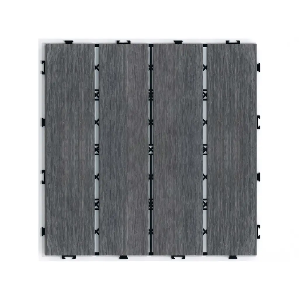 Wpc Wood Plastic Composite Floor Tiles, Suitable For Indoor And Outdoor Waterproof Diy Splicing Floor - Grey - 11packs