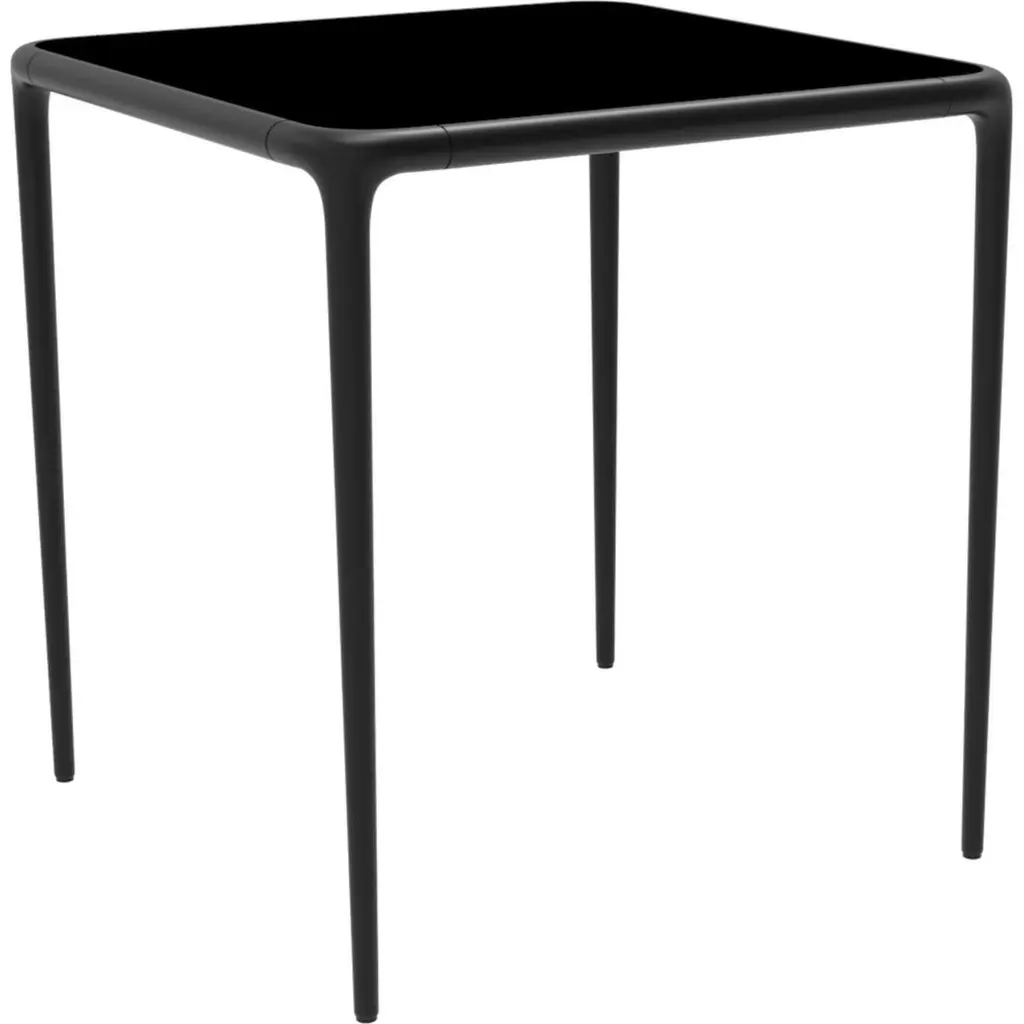 Xaloc black glass top table 70 by MOWEEDimensions: D70 x W70 x H74 cmMaterial: Aluminum, tinted tempered glass top.Also available in different aluminum colors and finishes (HPL Black Edge or Neolith). Xaloc synthesizes the lines of interior furniture to extrapolate to the exterior, creating an elegant and versatile collection that can coexist in both contexts. The textile of its elements also want to represent this concern to provide the exterior with the warmth of the interior furniture.The name Xaloc comes from the wind with the same name. A strong wind typical of the Mediterranean area. A wind capable of eroding the environment it meets. The shapes of the collection represent this wind-induced erosion that generates natural and harmonic forms.Möwee is part of the work, effort and commitment of Gaviota, a leading company in the outdoor sector. It was set up as an independent venture to broaden horizons in the outdoor furniture world, with its own distinctive character and way of doing things. Freshness, simplicity, quality and design are at the heart of its DNA.