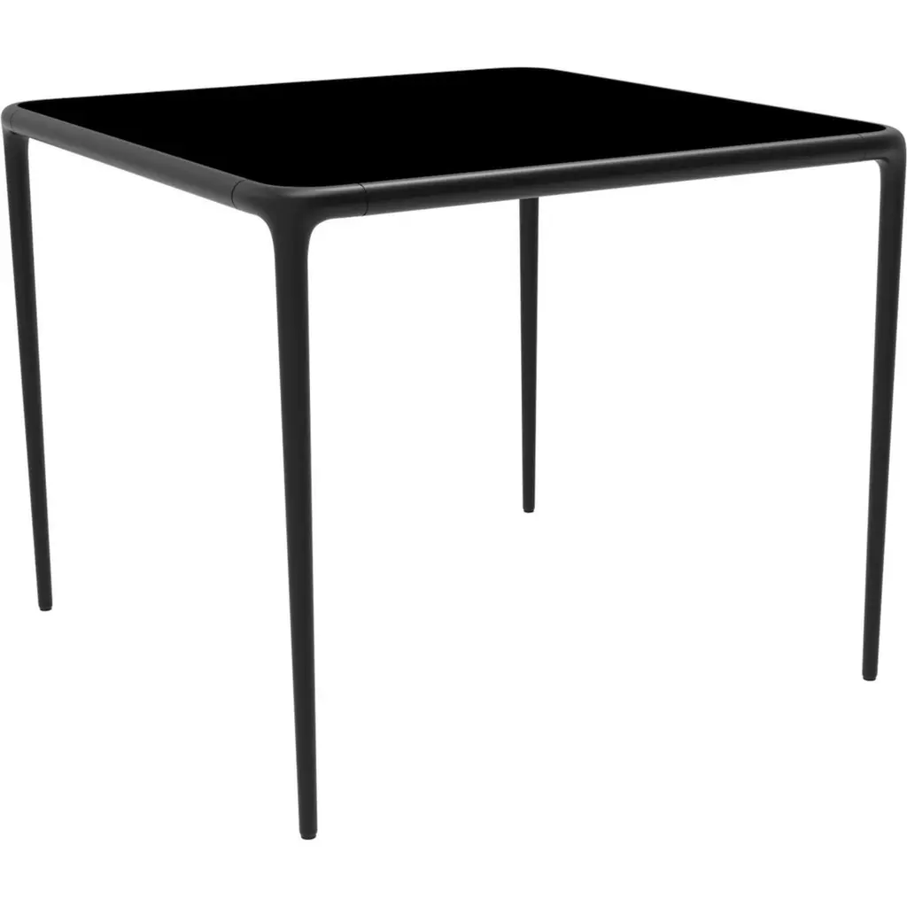 Xaloc black glass top table 90 by Mowee.Dimensions: D90 x W90 x H74 cm.Material: Aluminum, tinted tempered glass top.Also available in different aluminum colors and finishes (HPL Black Edge or Neolith). Xaloc synthesizes the lines of interior furniture to extrapolate to the exterior, creating an elegant and versatile collection that can coexist in both contexts. The textile of its elements also want to represent this concern to provide the exterior with the warmth of the interior furniture.The name Xaloc comes from the wind with the same name. A strong wind typical of the Mediterranean area. A wind capable of eroding the environment it meets. The shapes of the collection represent this wind-induced erosion that generates natural and harmonic forms.Möwee is part of the work, effort and commitment of Gaviota, a leading company in the outdoor sector. It was set up as an independent venture to broaden horizons in the outdoor furniture world, with its own distinctive character and way of doing things. Freshness, simplicity, quality and design are at the heart of its DNA.