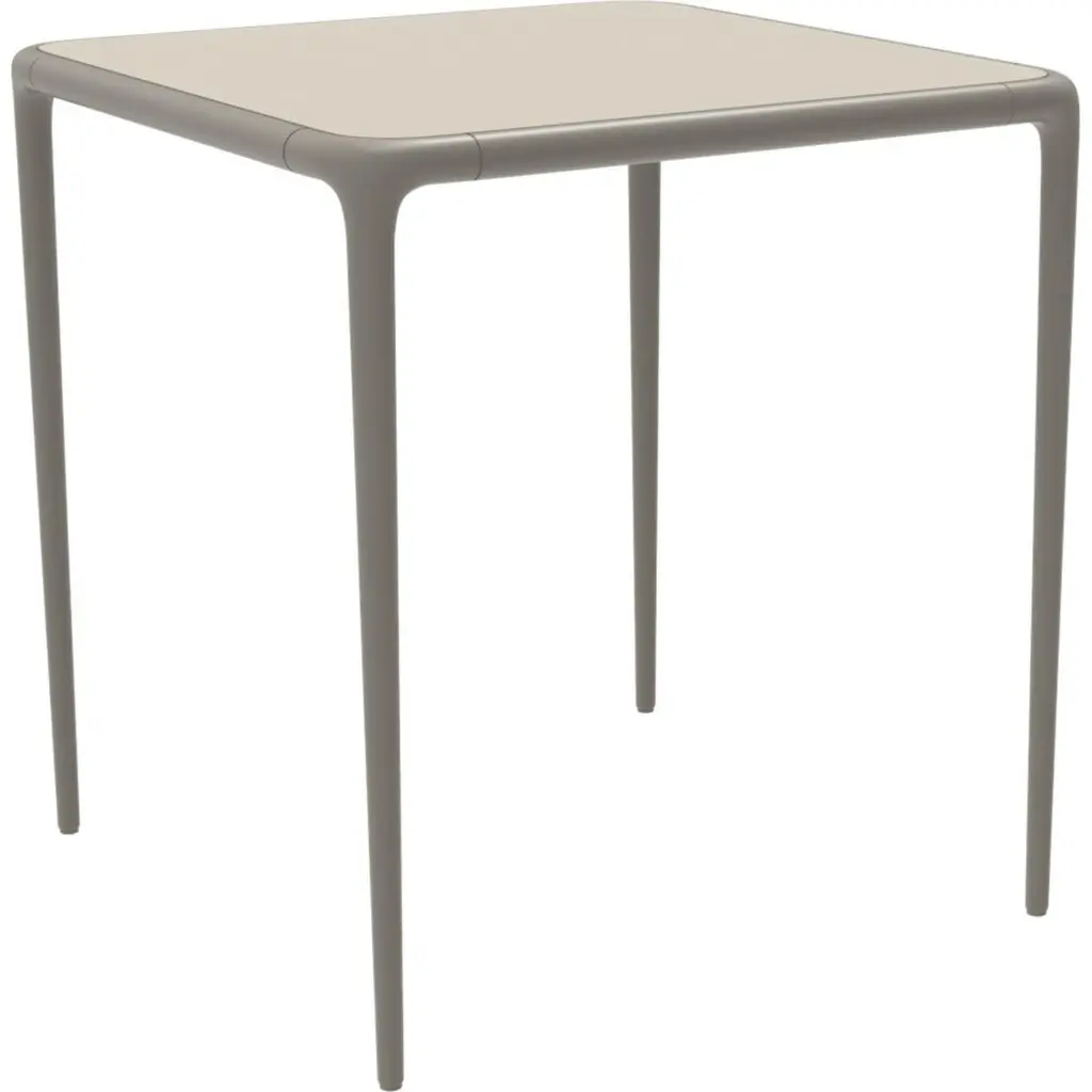 Xaloc cream glass top table 70 by Mowee.Dimensions: D70 x W70 x H74 cm.Material: Aluminum, tinted tempered glass top.Also available in different aluminum colors and finishes (HPL Black Edge or Neolith).Xaloc synthesizes the lines of interior furniture to extrapolate to the exterior, creating an elegant and versatile collection that can coexist in both contexts. The textile of its elements also want to represent this concern to provide the exterior with the warmth of the interior furniture.The name Xaloc comes from the wind with the same name. A strong wind typical of the Mediterranean area. A wind capable of eroding the environment it meets. The shapes of the collection represent this wind-induced erosion that generates natural and harmonic forms.Möwee is part of the work, effort and commitment of Gaviota, a leading company in the outdoor sector. It was set up as an independent venture to broaden horizons in the outdoor furniture world, with its own distinctive character and way of doing things. Freshness, simplicity, quality and design are at the heart of its DNA.