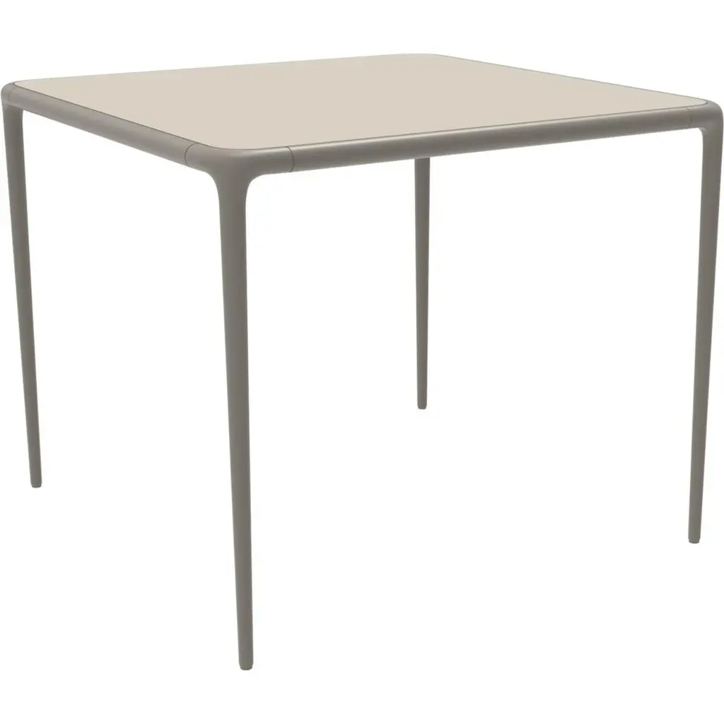 Xaloc cream glass top table 90 by MOWEEDimensions: D90 x W90 x H74 cmMaterial: Aluminum, tinted tempered glass top.Also available in different aluminum colors and finishes (HPL Black Edge or Neolith). Xaloc synthesizes the lines of interior furniture to extrapolate to the exterior, creating an elegant and versatile collection that can coexist in both contexts. The textile of its elements also want to represent this concern to provide the exterior with the warmth of the interior furniture.The name Xaloc comes from the wind with the same name. A strong wind typical of the Mediterranean area. A wind capable of eroding the environment it meets. The shapes of the collection represent this wind-induced erosion that generates natural and harmonic forms.Möwee is part of the work, effort and commitment of Gaviota, a leading company in the outdoor sector. It was set up as an independent venture to broaden horizons in the outdoor furniture world, with its own distinctive character and way of doing things. Freshness, simplicity, quality and design are at the heart of its DNA.