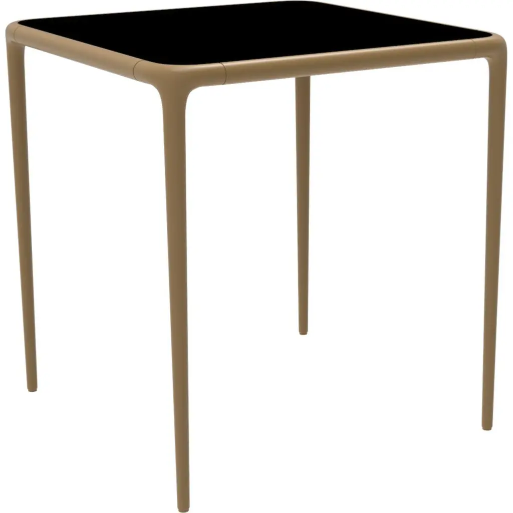 Xaloc Gold glass top table 70 by MOWEEDimensions: D70 x W70 x H74 cmMaterial: Aluminum, tinted tempered glass top.Also available in different aluminum colors and finishes (HPL Black Edge or Neolith). Xaloc synthesizes the lines of interior furniture to extrapolate to the exterior, creating an elegant and versatile collection that can coexist in both contexts. The textile of its elements also want to represent this concern to provide the exterior with the warmth of the interior furniture.The name Xaloc comes from the wind with the same name. A strong wind typical of the Mediterranean area. A wind capable of eroding the environment it meets. The shapes of the collection represent this wind-induced erosion that generates natural and harmonic forms.Möwee is part of the work, effort and commitment of Gaviota, a leading company in the outdoor sector. It was set up as an independent venture to broaden horizons in the outdoor furniture world, with its own distinctive character and way of doing things. Freshness, simplicity, quality and design are at the heart of its DNA.