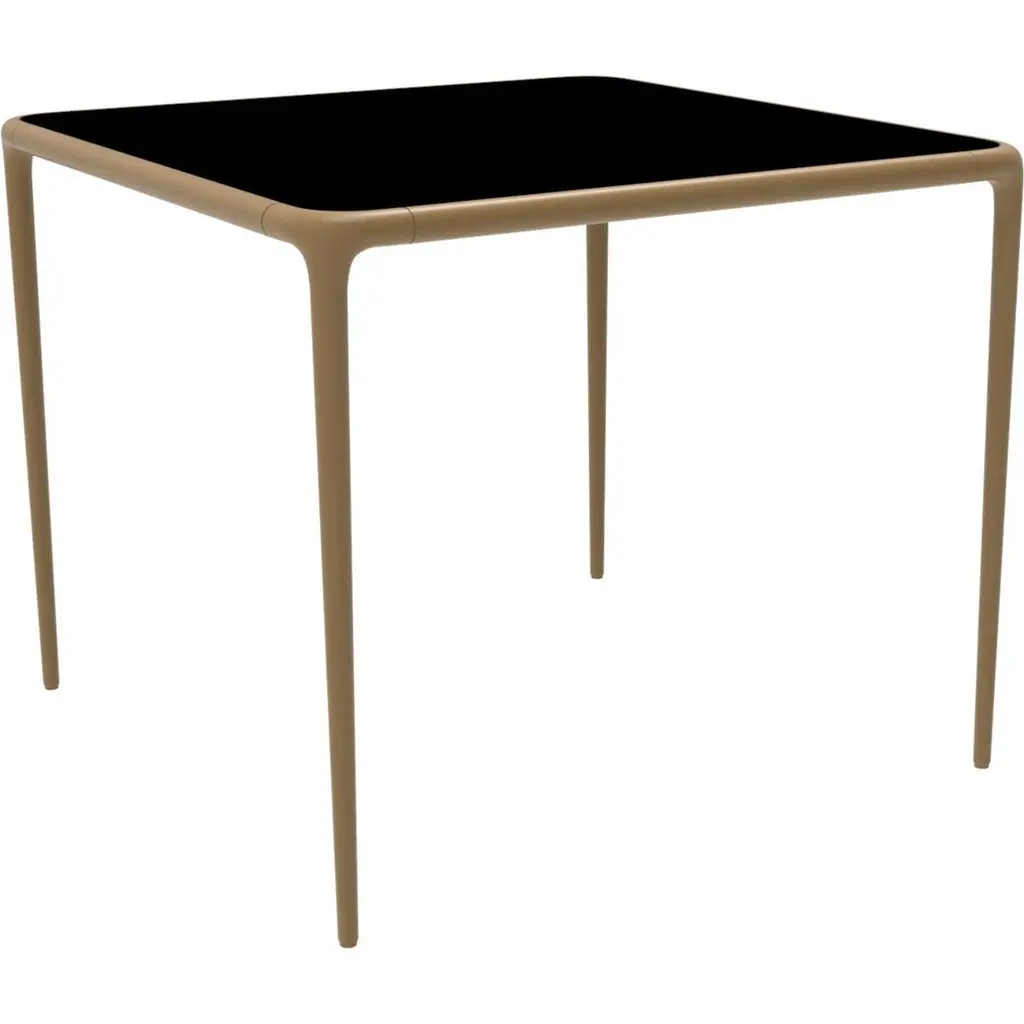 Xaloc Gold glass top table 90 by MOWEEDimensions: D90 x W90 x H74 cmMaterial: Aluminum, tinted tempered glass top.Also available in different aluminum colors and finishes (HPL Black Edge or Neolith). Xaloc synthesizes the lines of interior furniture to extrapolate to the exterior, creating an elegant and versatile collection that can coexist in both contexts. The textile of its elements also want to represent this concern to provide the exterior with the warmth of the interior furniture.The name Xaloc comes from the wind with the same name. A strong wind typical of the Mediterranean area. A wind capable of eroding the environment it meets. The shapes of the collection represent this wind-induced erosion that generates natural and harmonic forms.Möwee is part of the work, effort and commitment of Gaviota, a leading company in the outdoor sector. It was set up as an independent venture to broaden horizons in the outdoor furniture world, with its own distinctive character and way of doing things. Freshness, simplicity, quality and design are at the heart of its DNA.