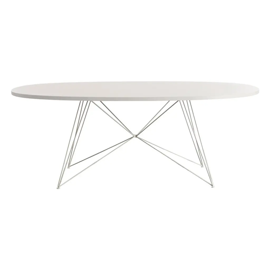 Magis’ XZ3 table has a light and sculptural appearance created by the three-dimensional shapes of its slender, coated steel rod structure. Thanks to the unique steel frame, the substructure of the XZ3 table is at least an equally important element as the tabletop itself. Magis designed the XZ3 table originally in 1990, and the collection got a fresh, renewed look in 2003. The table's simplistic design goes easily together with many kinds of modern chairs – you can find the right chairs for the table for instance from Magis’ large chair selection.